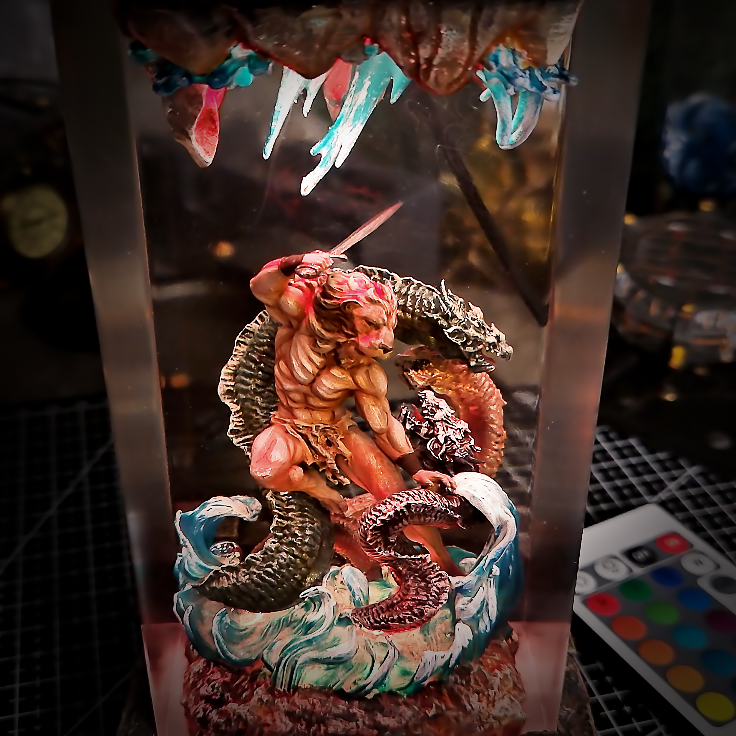 Showcase the legendary strength of Hercules with this dynamic resin lamp. The lamp highlights Hercules’s muscular form and heroic stance, reflecting his legendary feats and bravery. Glowing warmly, this lamp is ideal for fans of epic tales and classic heroes.