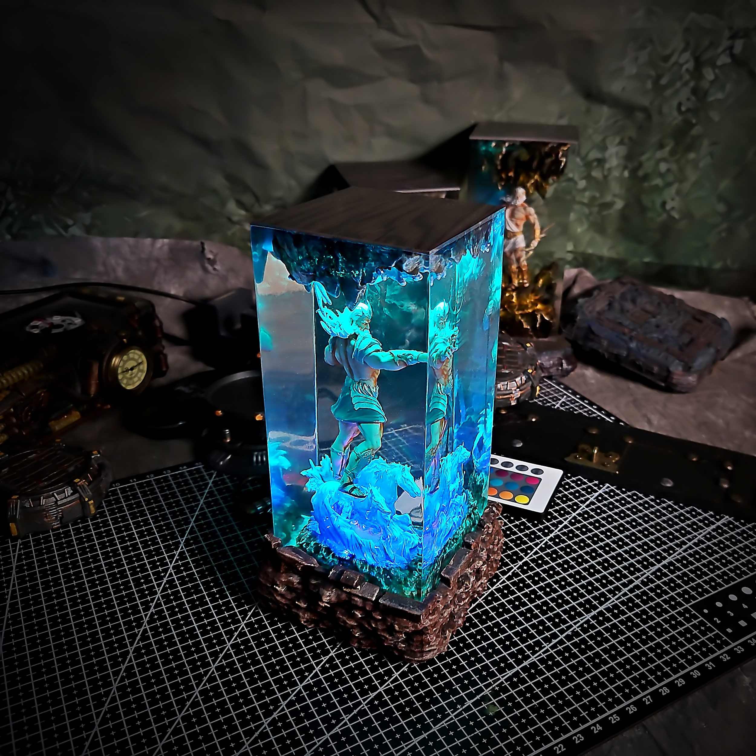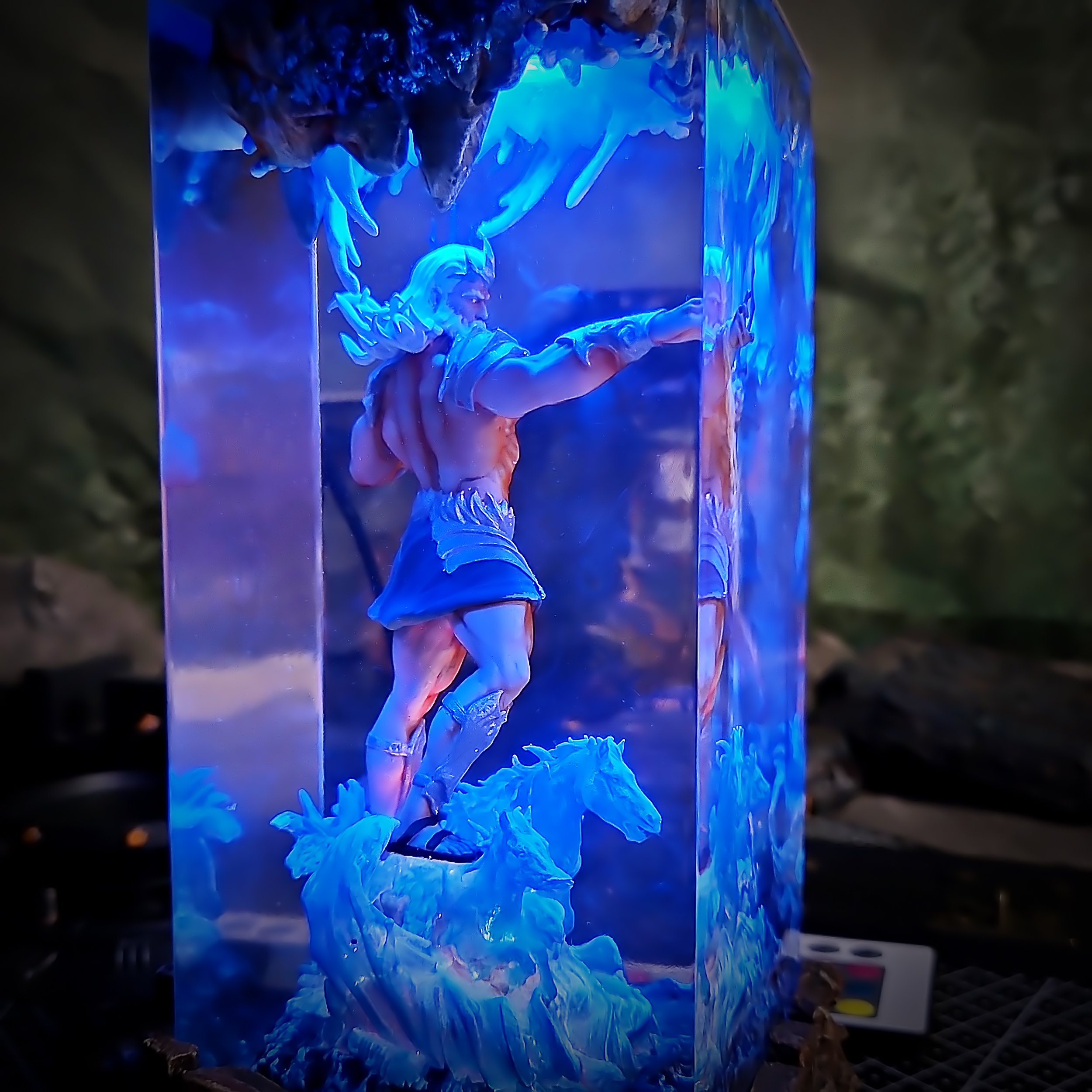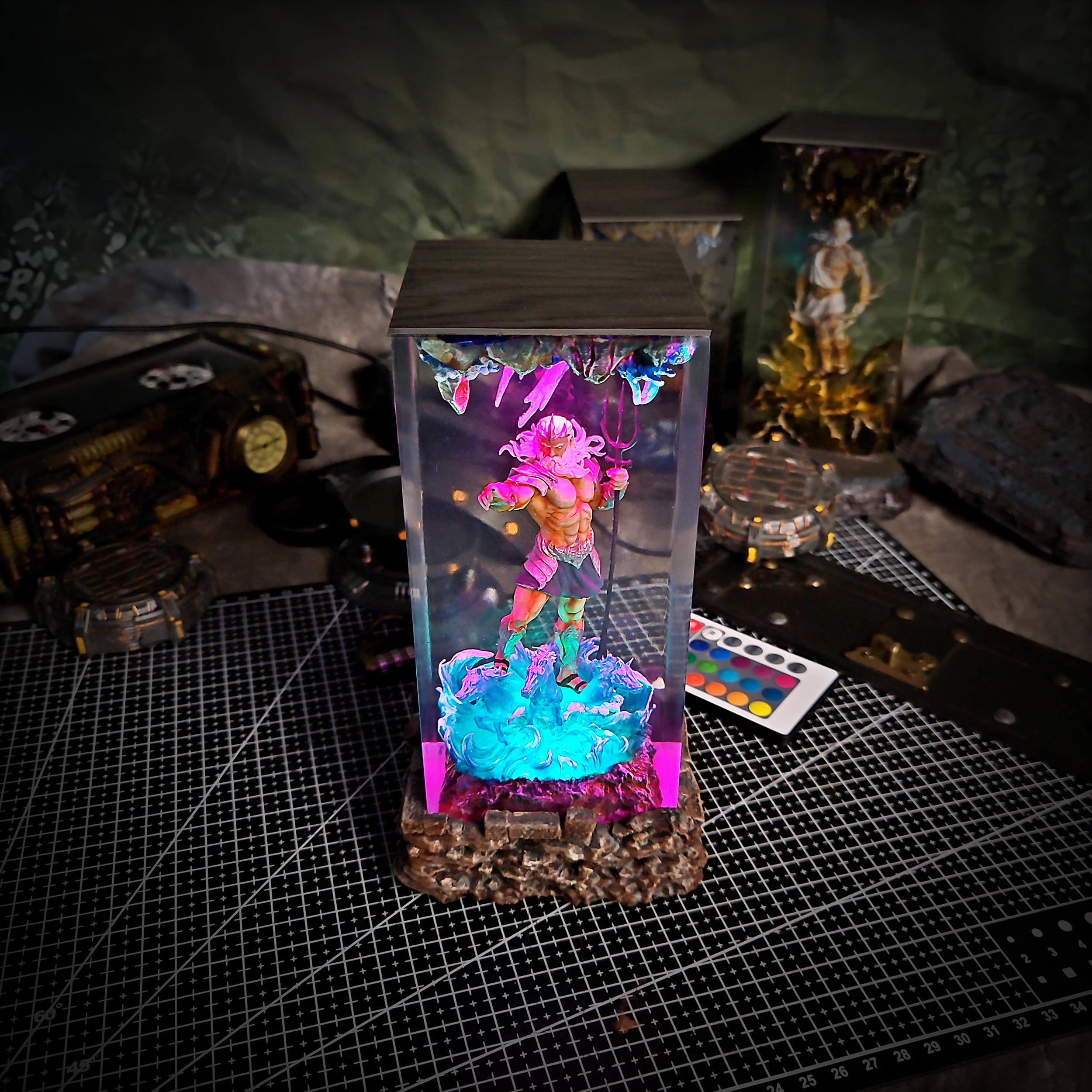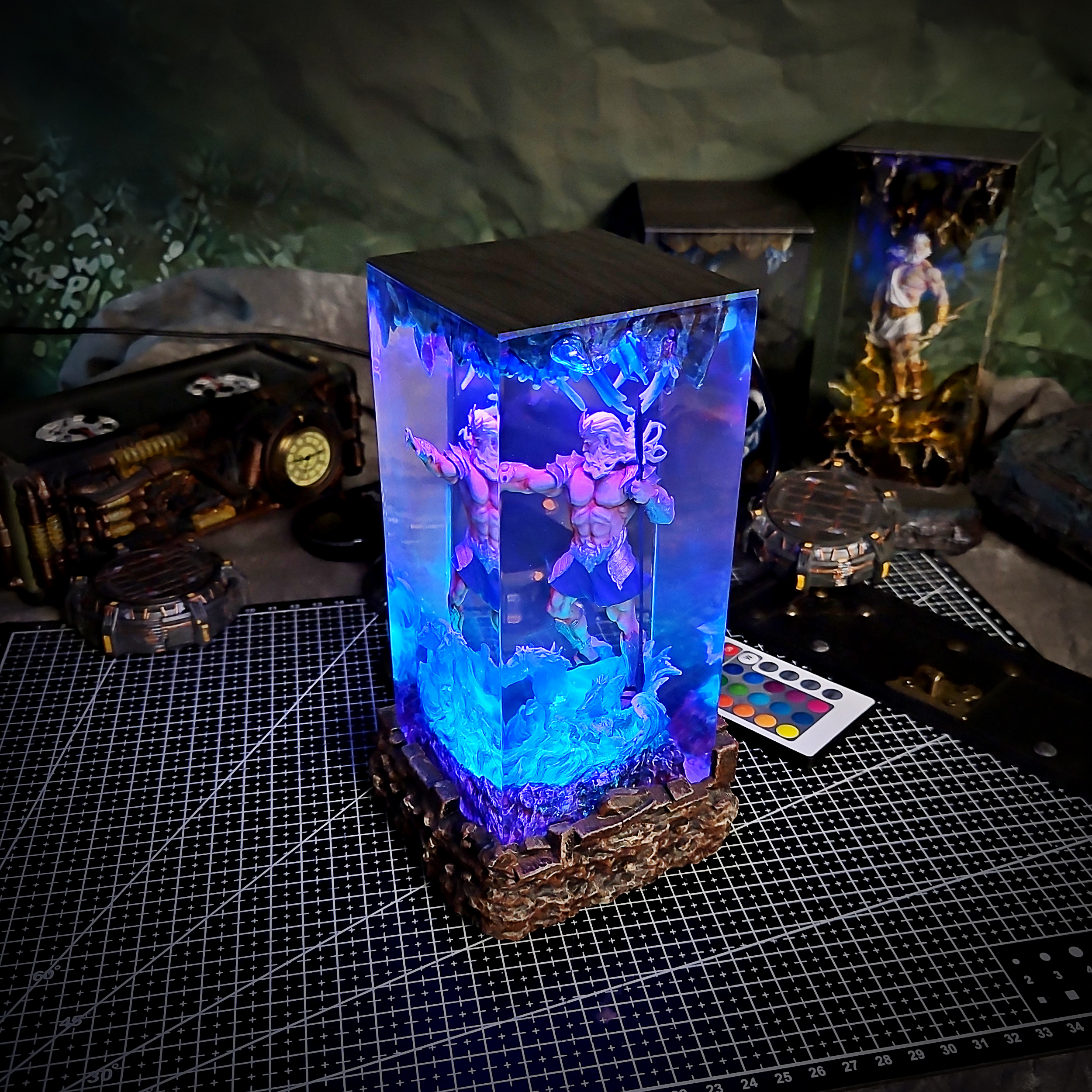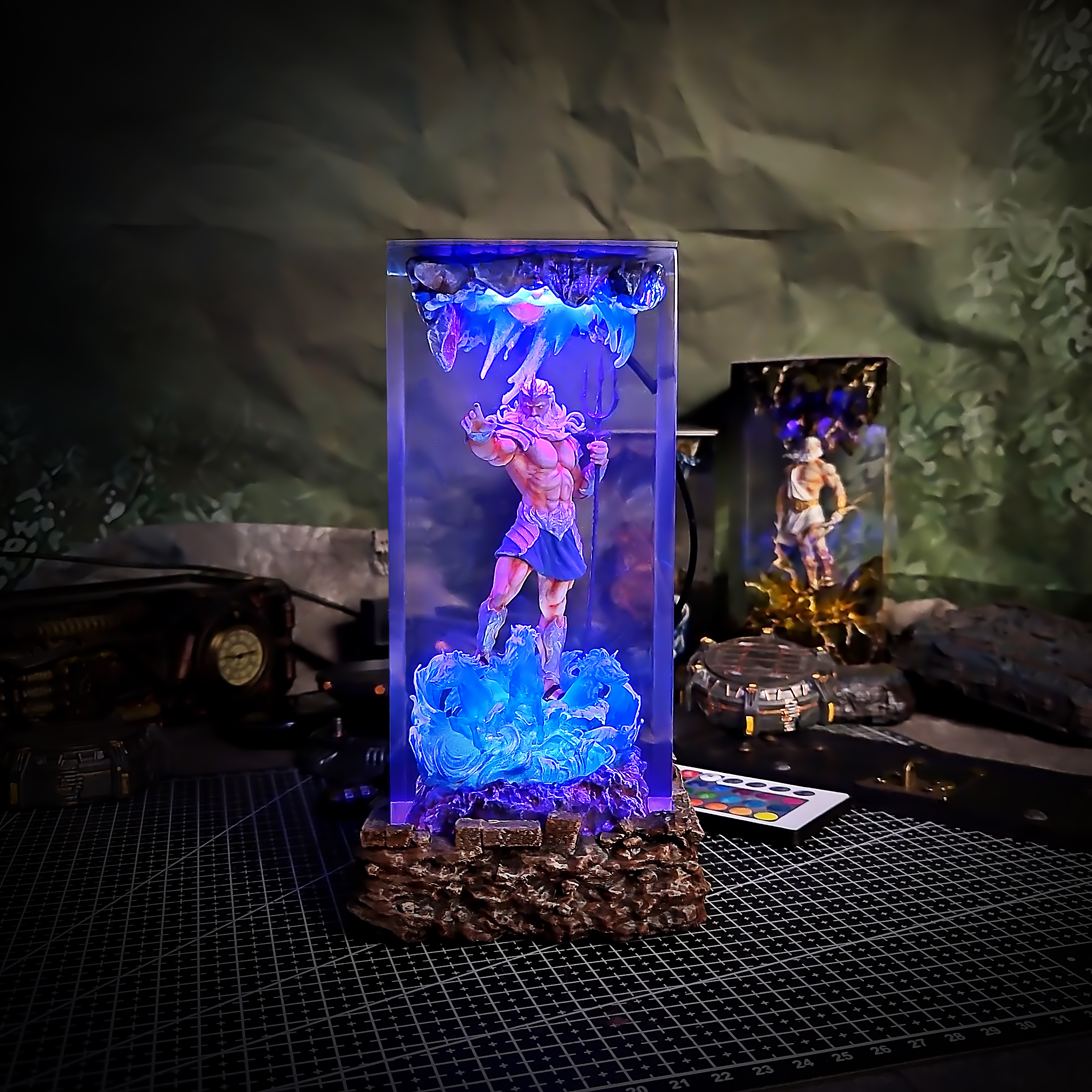 Bring the power of the sea god Poseidon into your room with this beautifully crafted resin lamp. Featuring Poseidon’s trident and flowing robes, the lamp radiates an aura of strength and mystery. The soft illumination enhances the intricate textures and details, making it a perfect decorative piece for lovers of Greek mythology.
