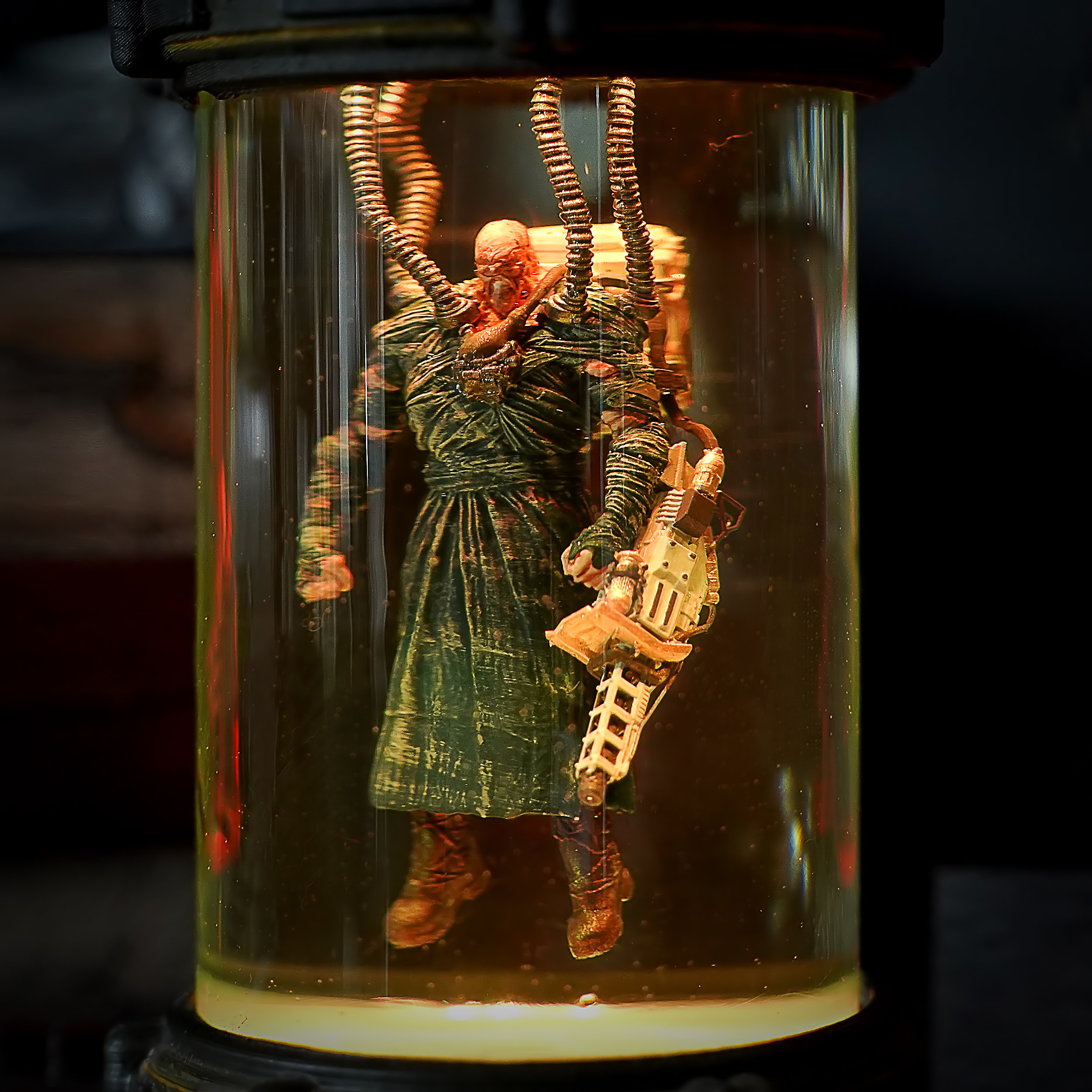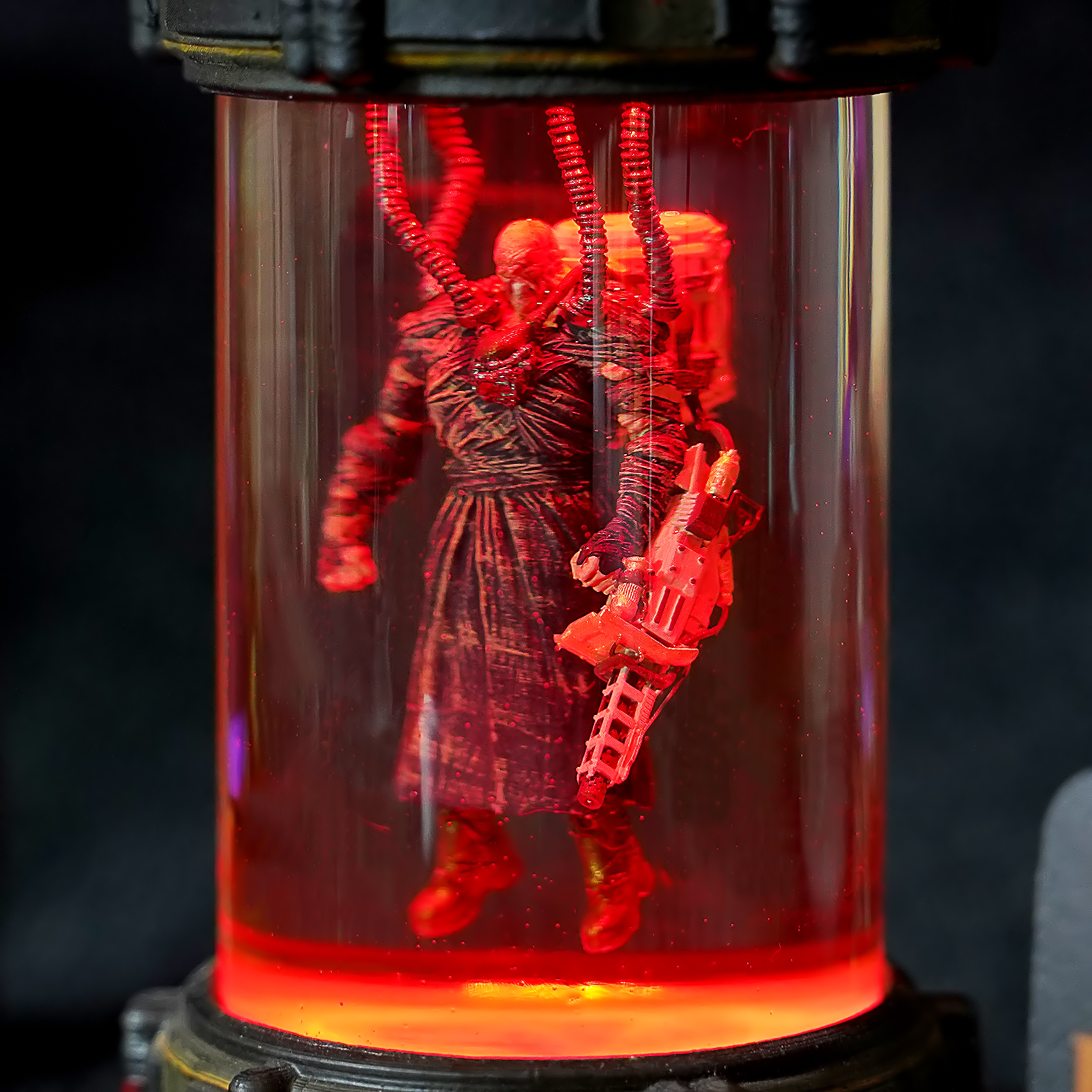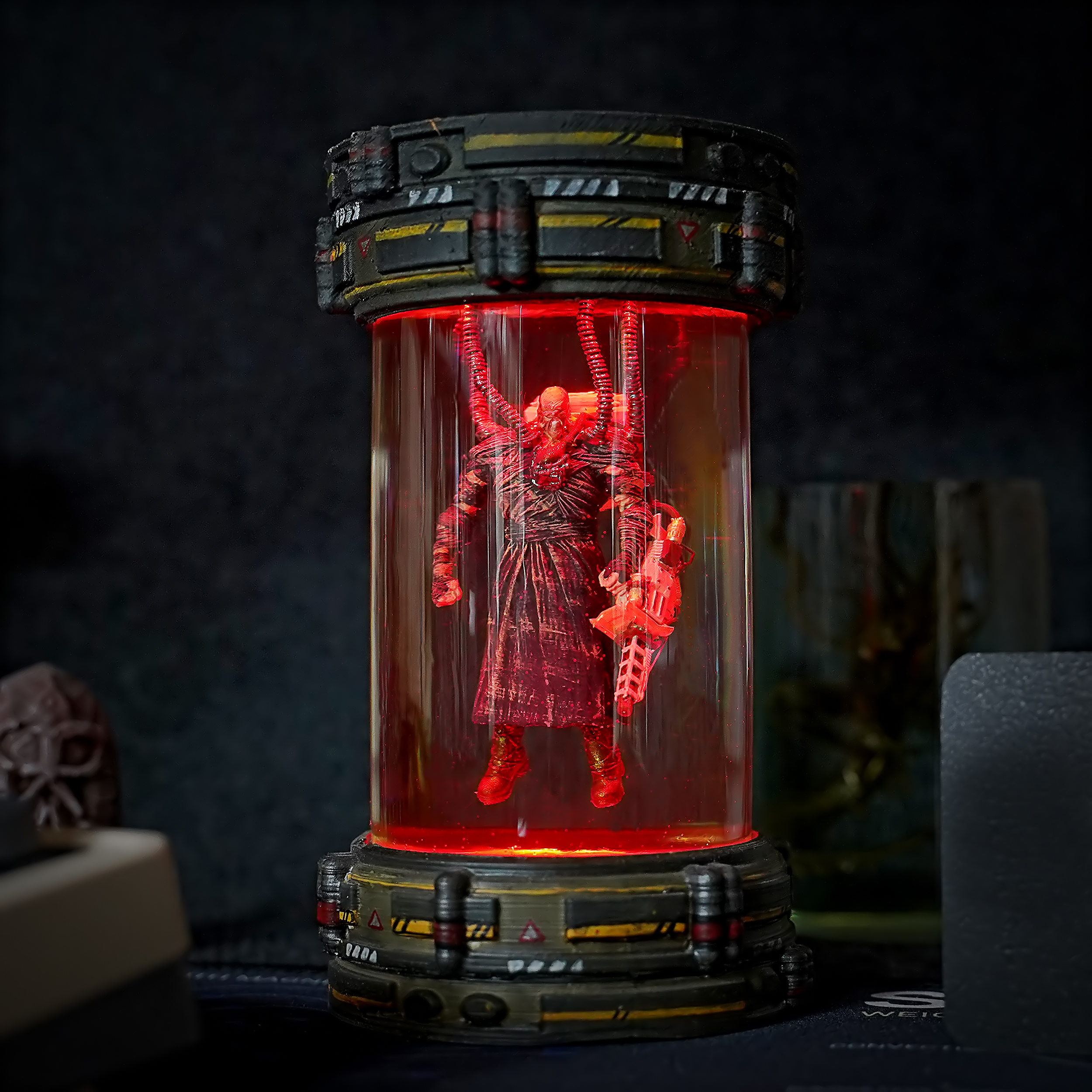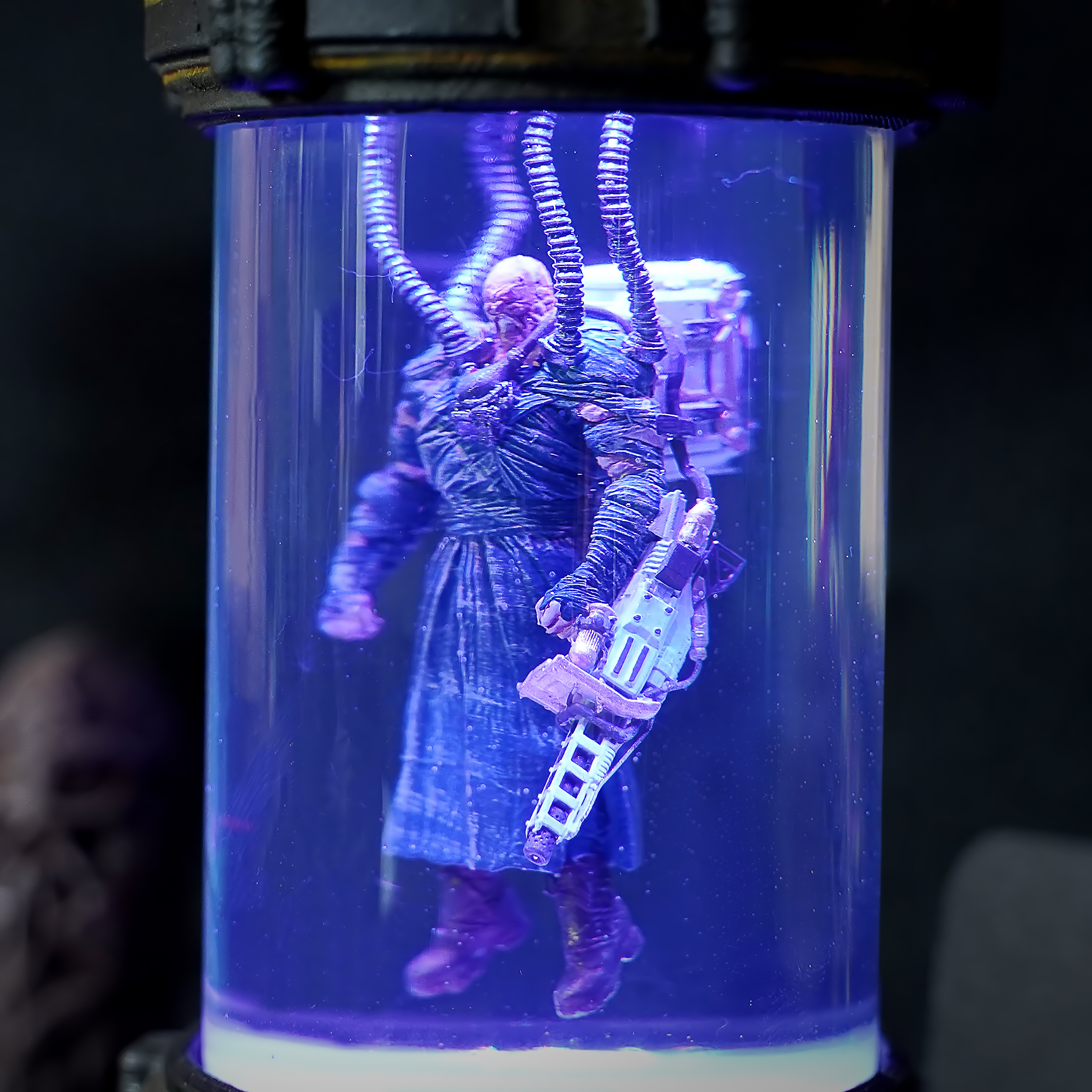 An original alien species crafted for this lamp series. Nemexis represents the mystery of undiscovered galactic life forms and is contained in a glowing resin stasis tube.