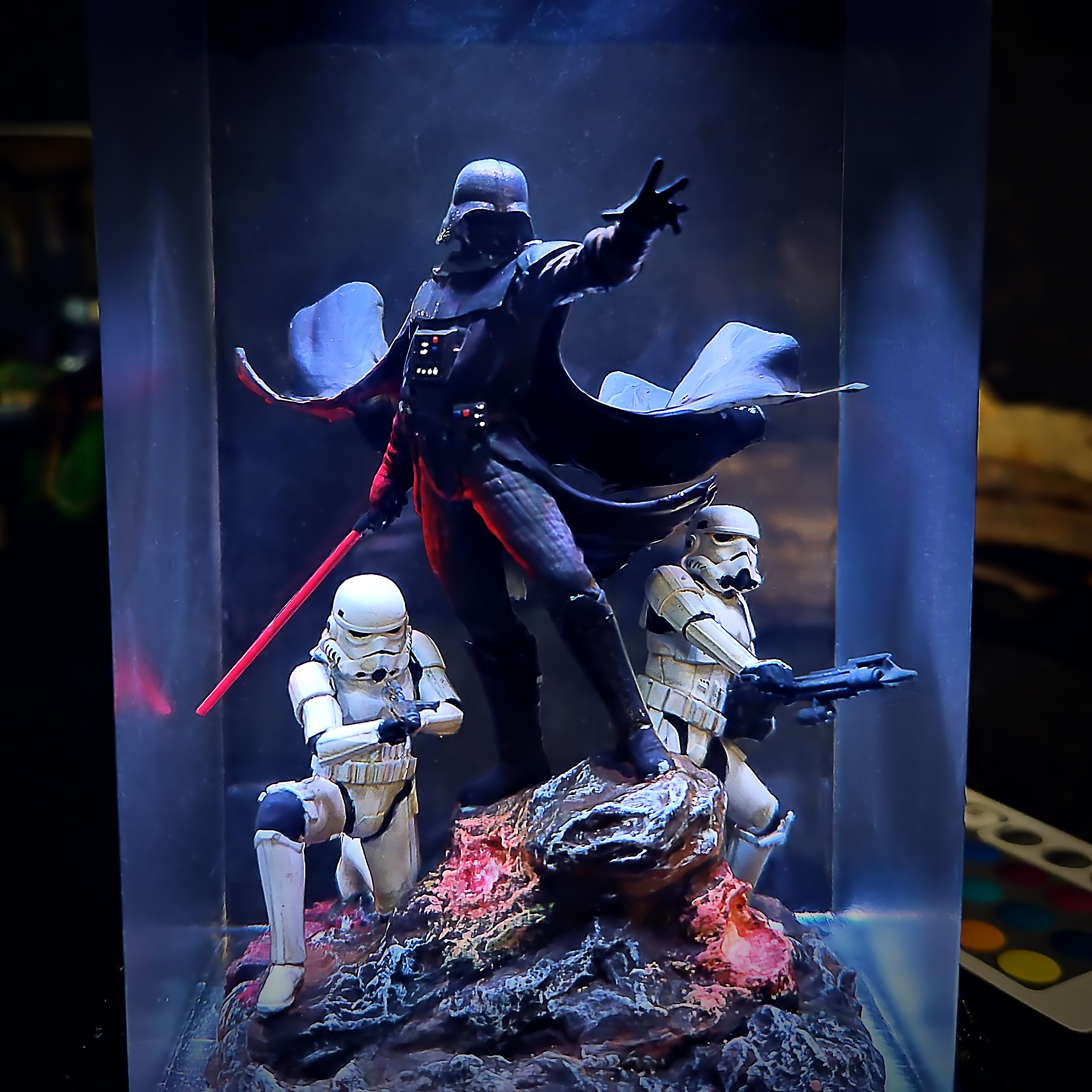 - Resin Casting – Crystal-clear resin is poured to encase the painted figure.