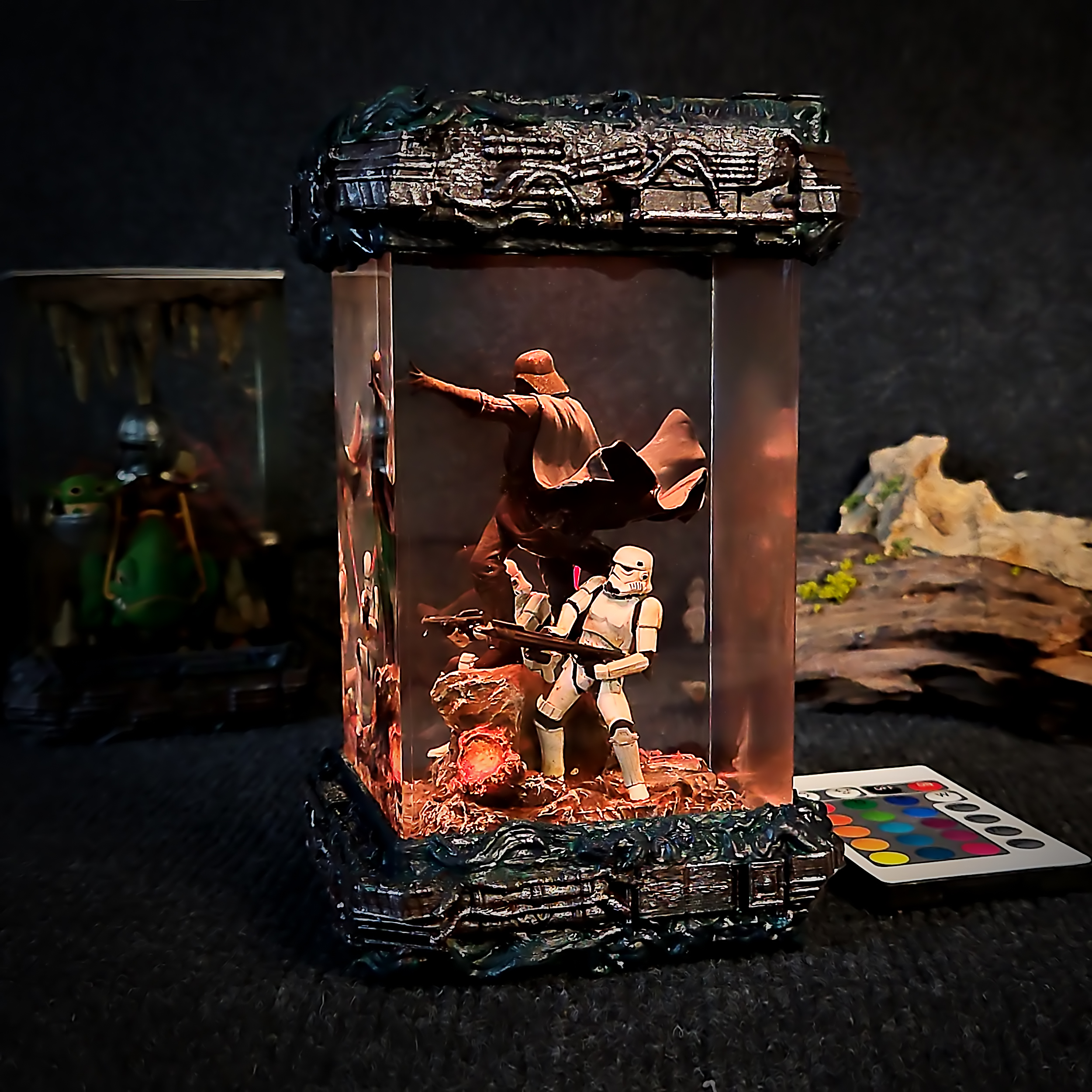 Embodying the dark power of the Sith, the Darth Vader Resin Lamp showcases the fearsome villain in dramatic lighting. This piece captures his commanding aura, complete with flowing cape and red saber glow—an essential item for Star Wars collectors.