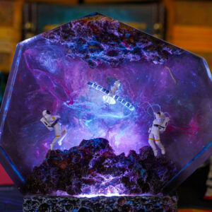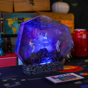 The Galaxy Satellite Resin Lamp showcases a floating satellite orbiting through a cosmic scene. This piece captures the quiet loneliness and beauty of space exploration β€” perfect for tech lovers and astronomy enthusiasts.