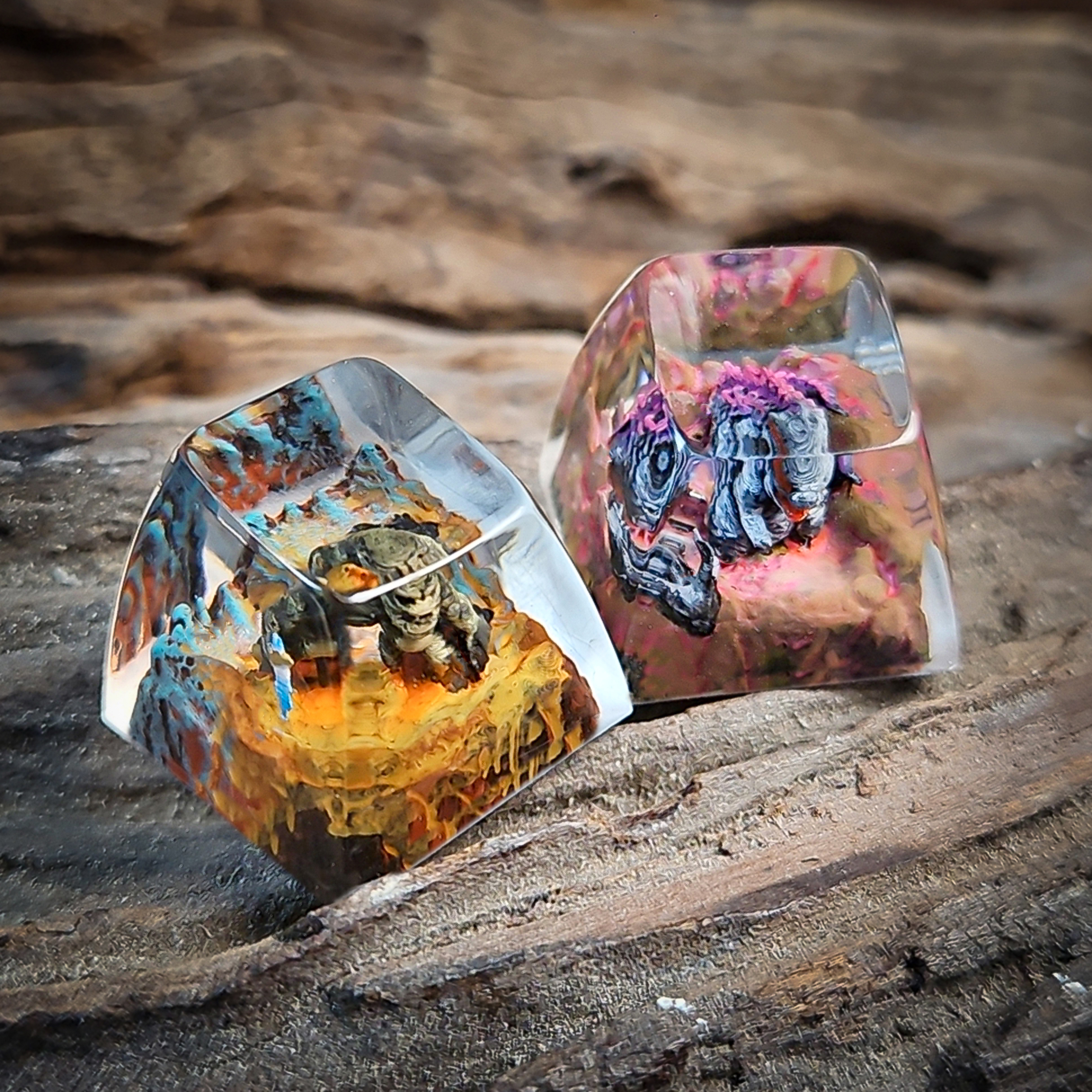 This handcrafted 1u resin keycap brings the legendary monster Godzilla to life in stunning miniature form. Encased beneath a clear resin dome, Godzilla’s iconic fierce expression, textured scales, and towering spines are meticulously sculpted and painted by hand. Every detail captures the raw power and unstoppable force of the King of Monsters, making this keycap a true collector’s piece.