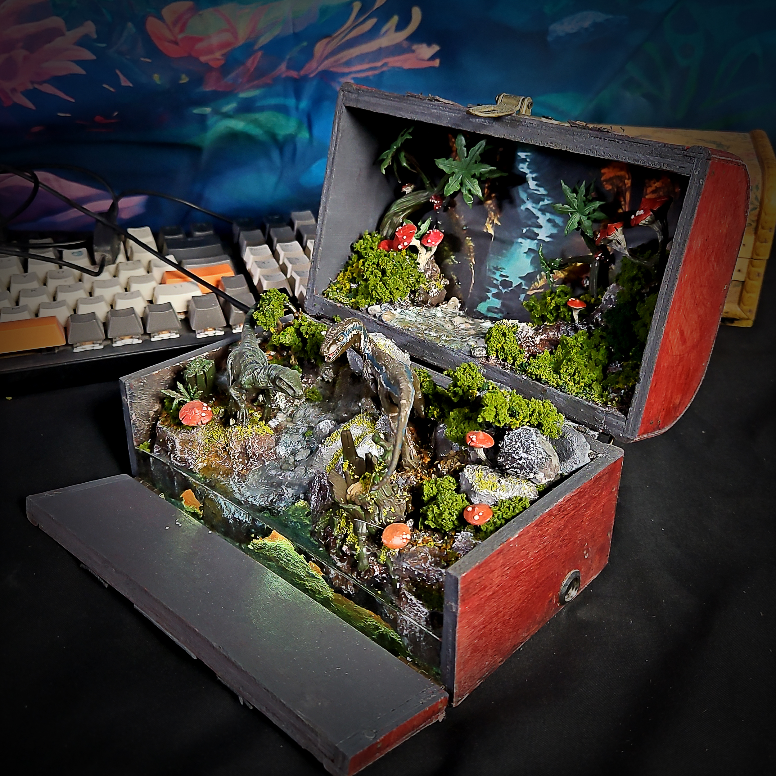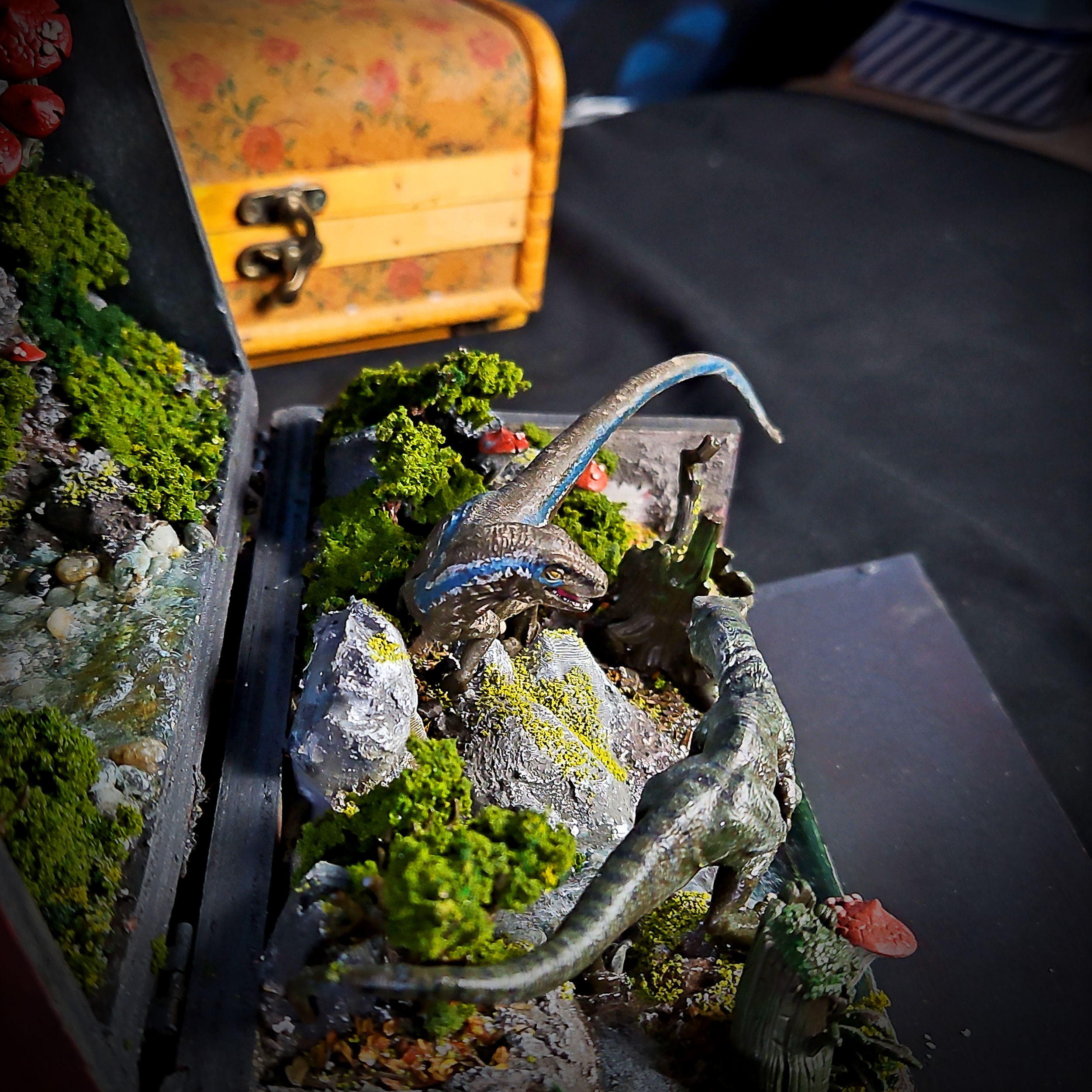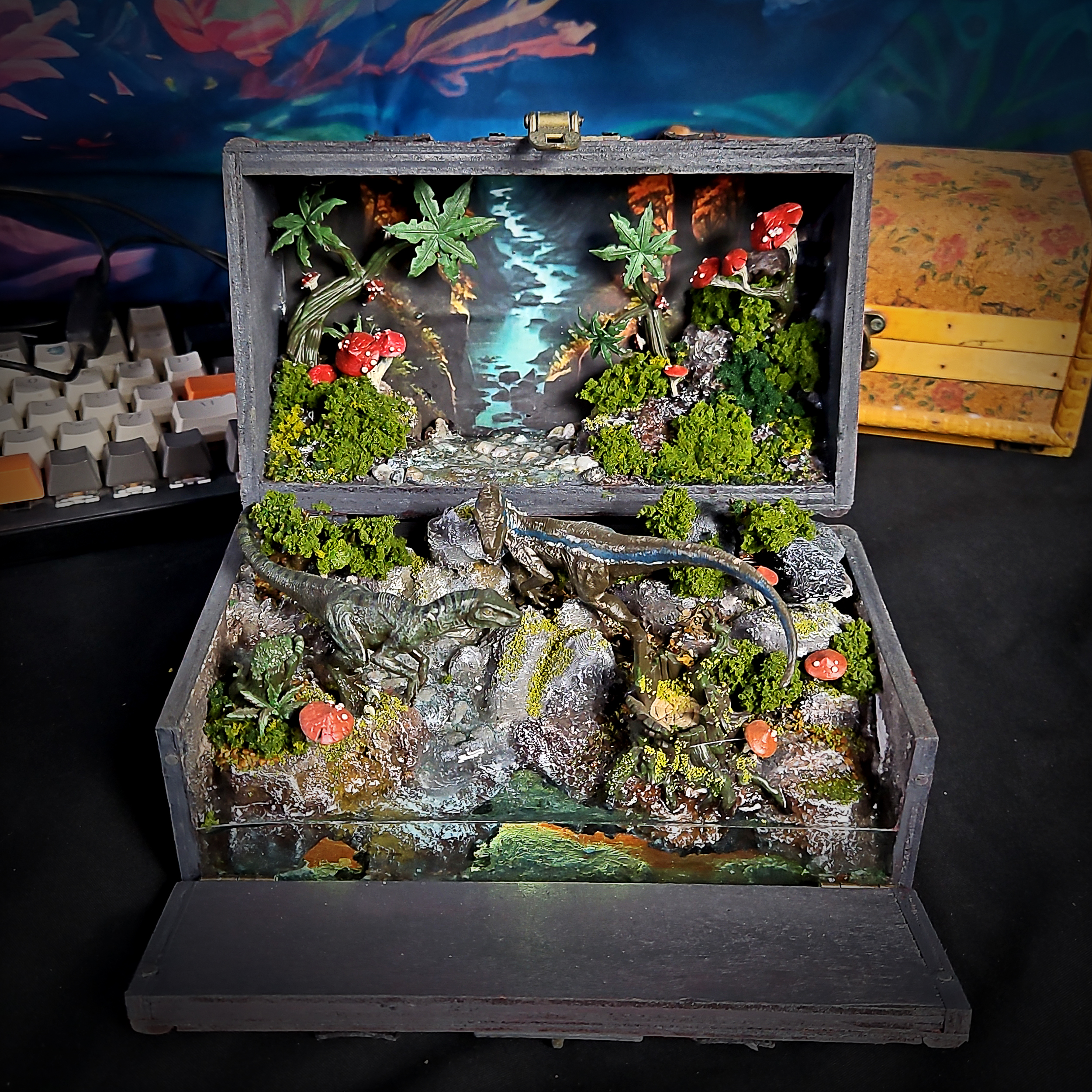 Illuminate Your Space with Prehistoric Wonder: Handcrafted Raptor Resin Diorama Light Boxes