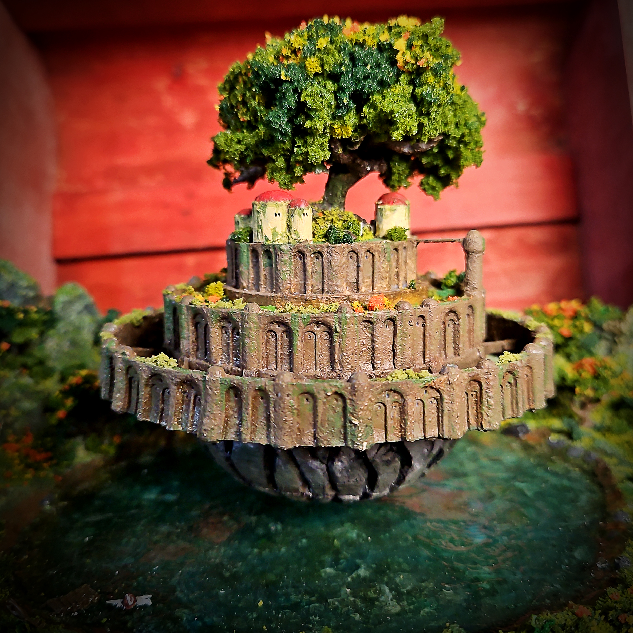 Imagine gazing upon a meticulously crafted replica of the legendary floating castle, suspended in shimmering, crystal-clear resin. Every detail, from the ancient stones to the lush greenery clinging to its sides, has been lovingly rendered to capture the spirit and wonder of Miyazaki’s timeless classic.