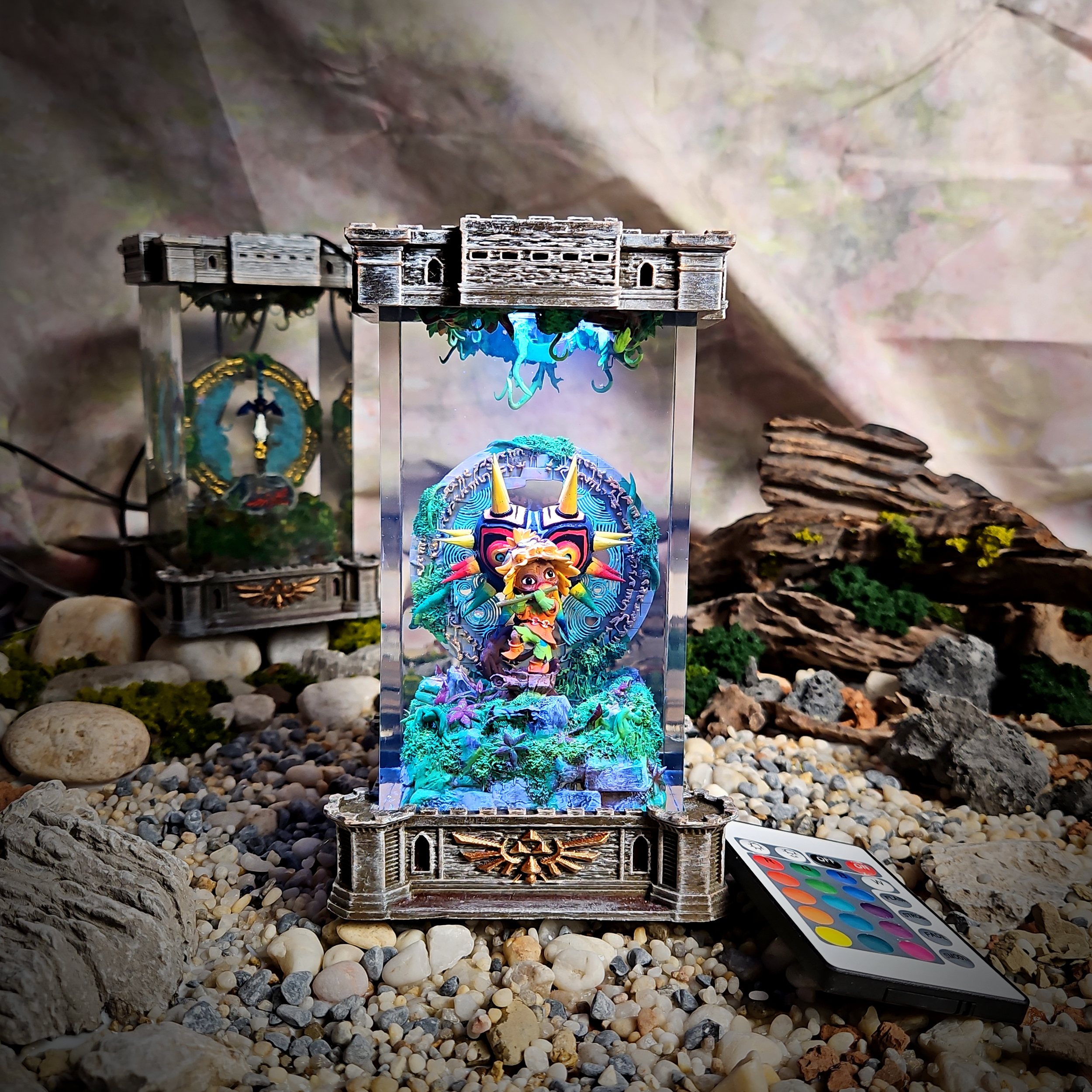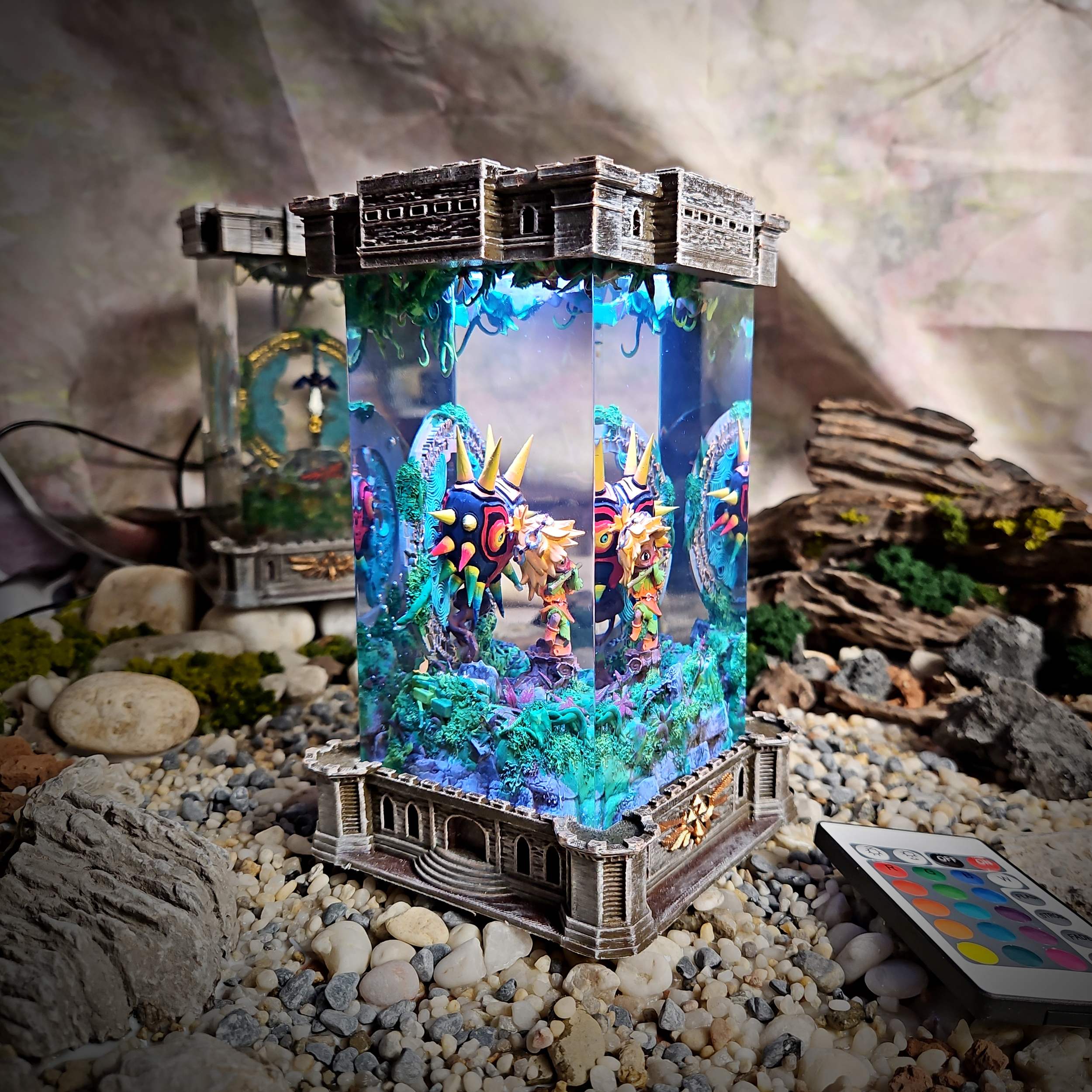 Inspired by Majora’s Mask, this hauntingly beautiful resin lamp features the mysterious mask with its intense eyes and intricate patterns. The Majora Resin Lamp captures the surreal, dark magic of this legendary artifact.