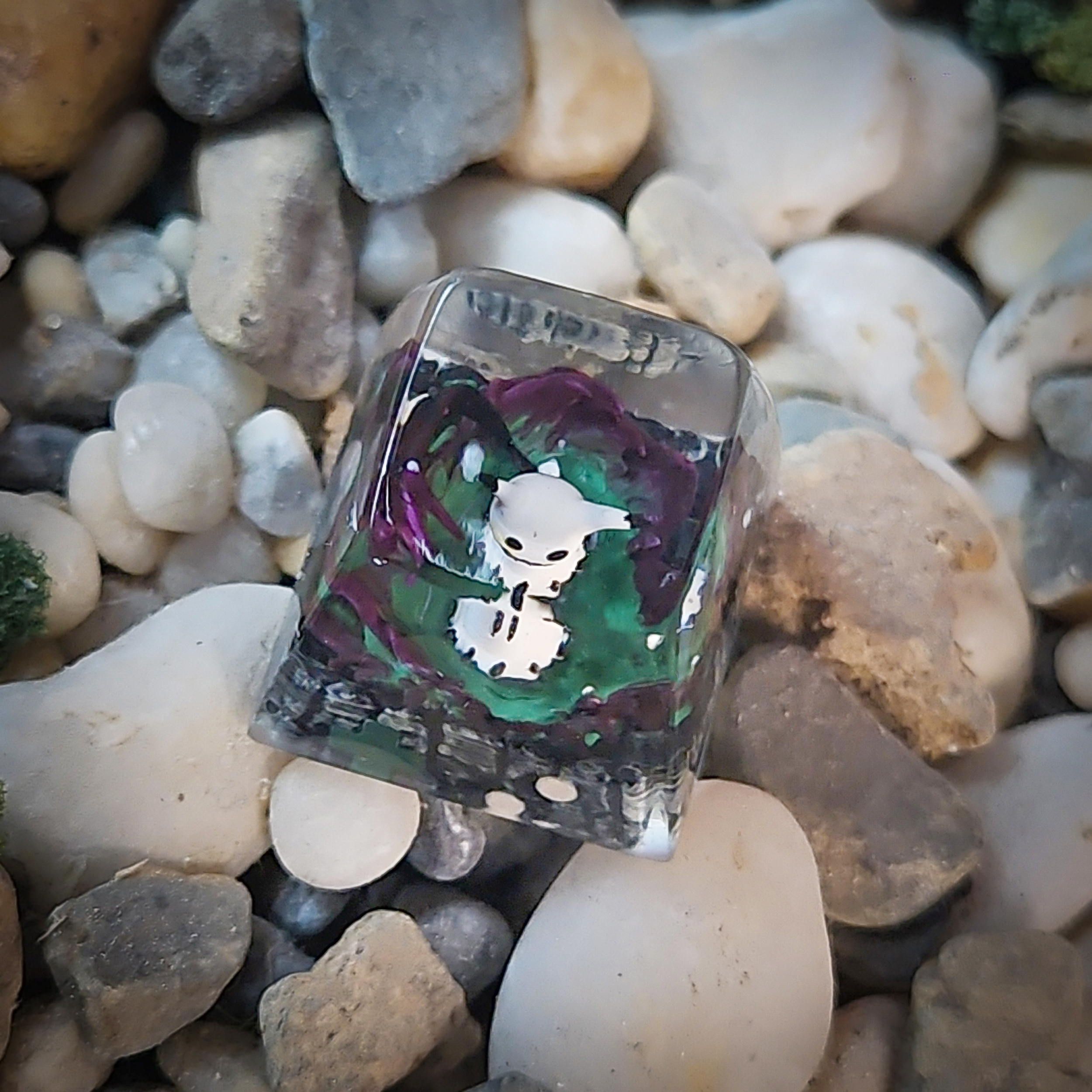 Each keycap is individually made by hand, ensuring that every piece has slight variations in tone, detail, and finish, making your keycap uniquely yours. The resin is polished to a glassy shine, enhancing the visual clarity and preserving the delicate details within. It’s both a tactile and visual delight every time you tap the key.