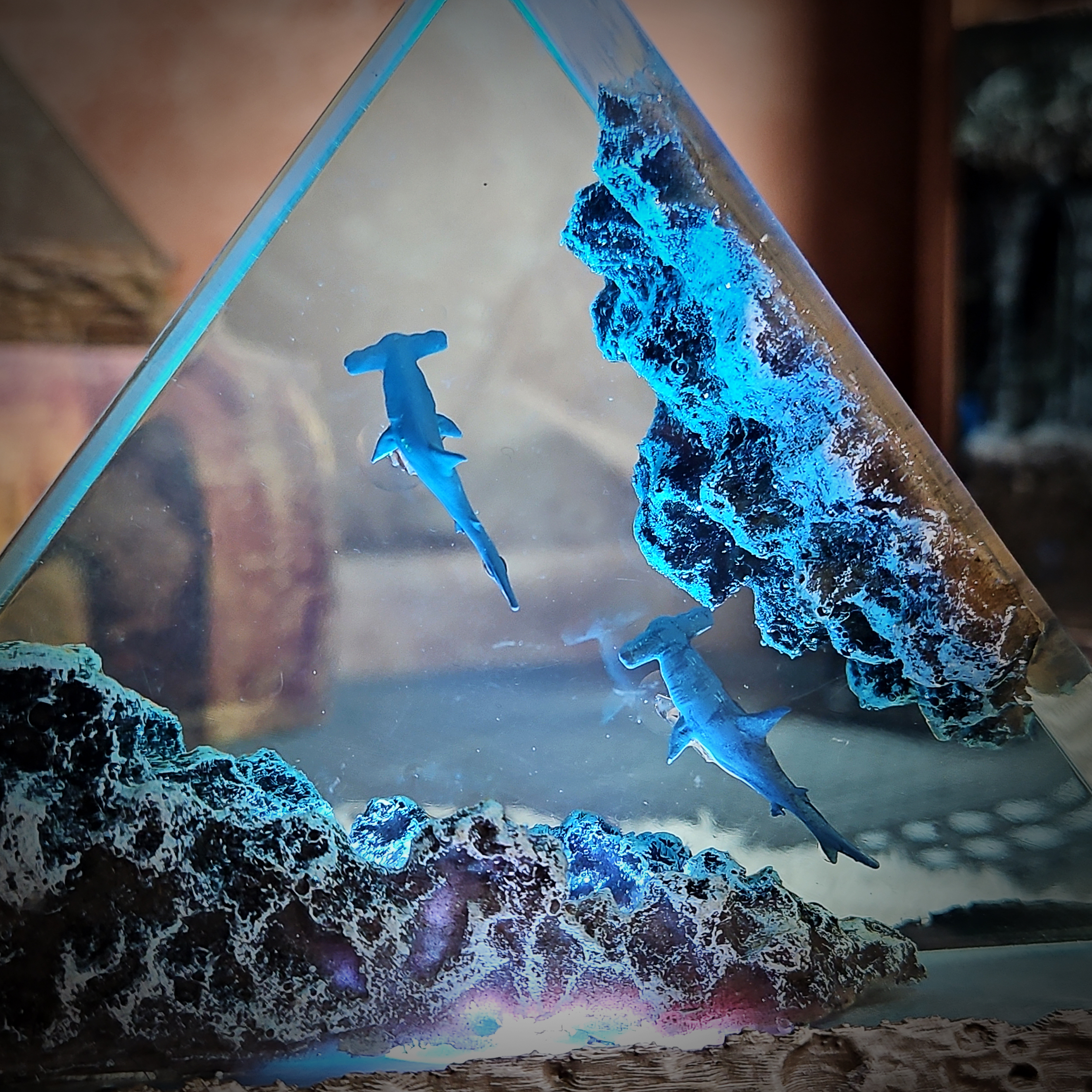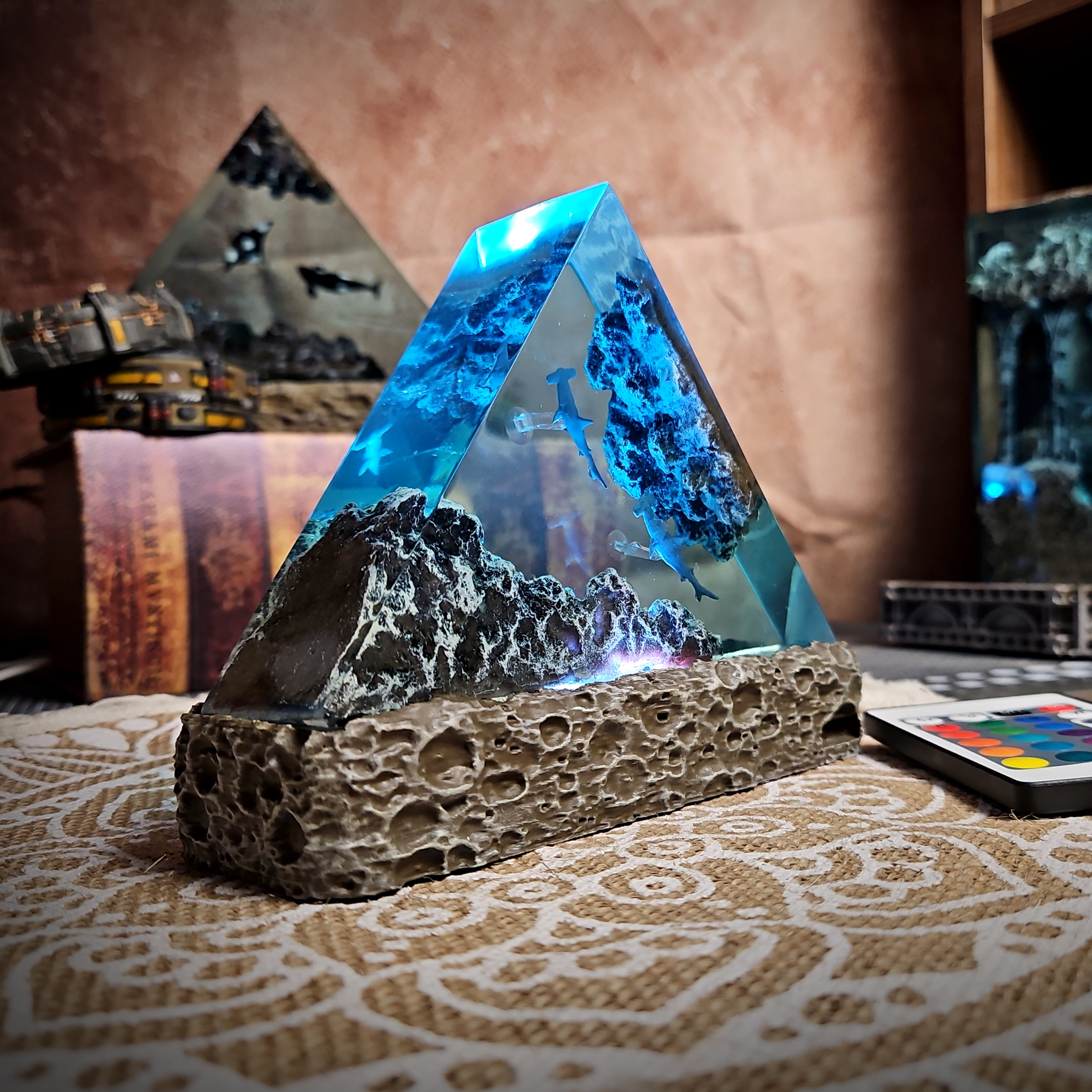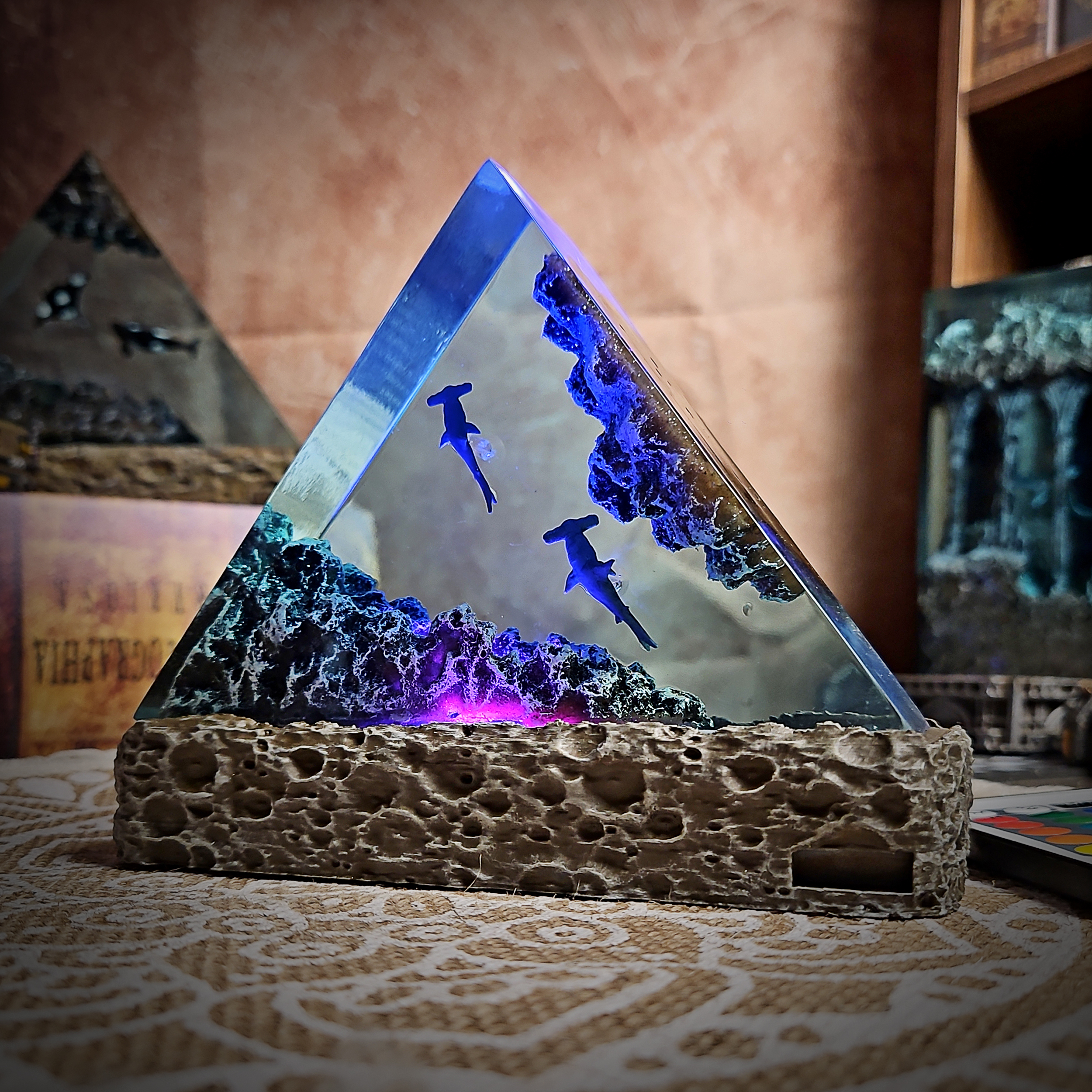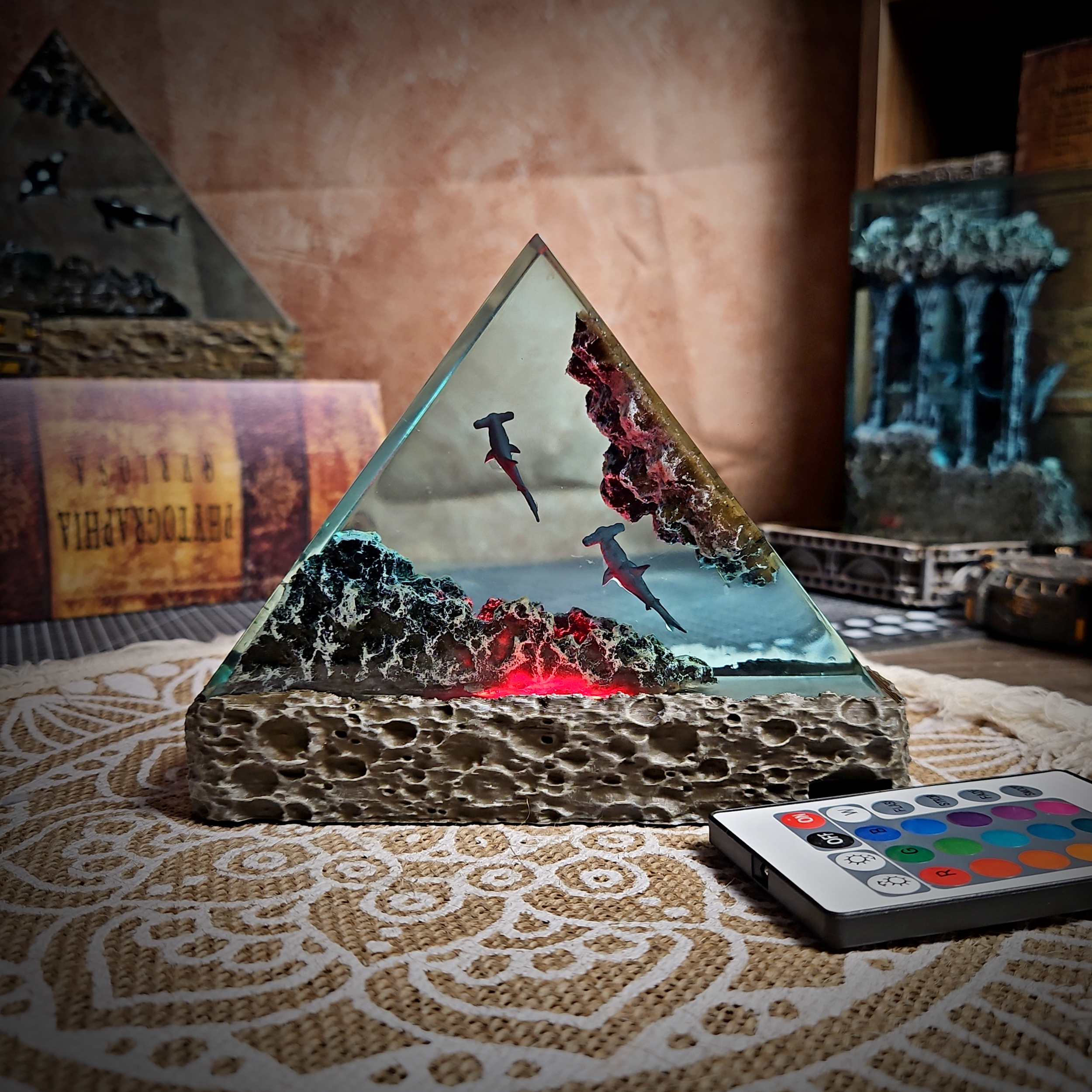 Dive into the deep blue with the Ocean Shark Triangle Resin Lamp. This piece captures a fierce yet majestic shark gliding through the sea, surrounded by swirling bubbles and marine details. A perfect blend of elegance and power, itโs ideal for ocean lovers and collectors of aquatic-themed art.
