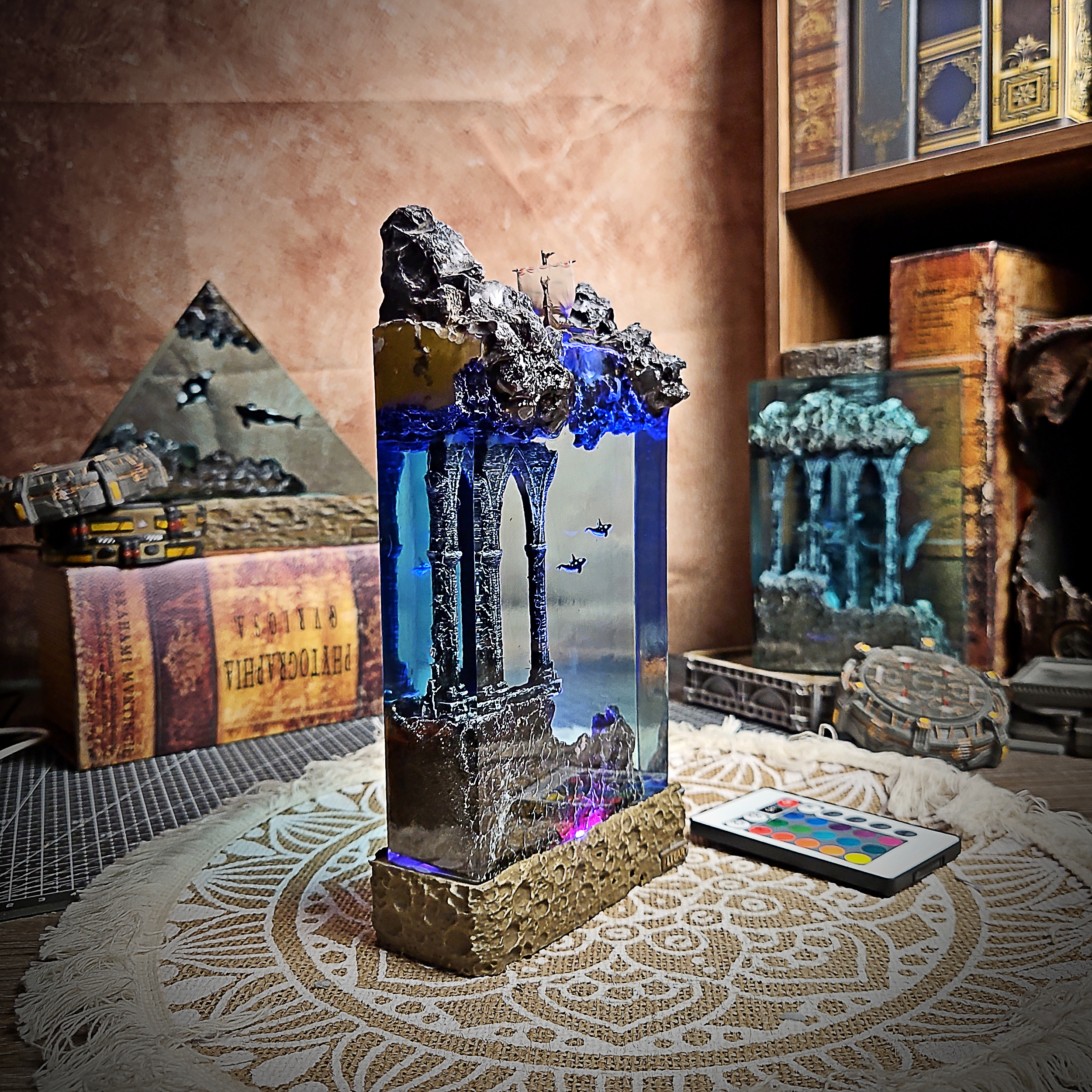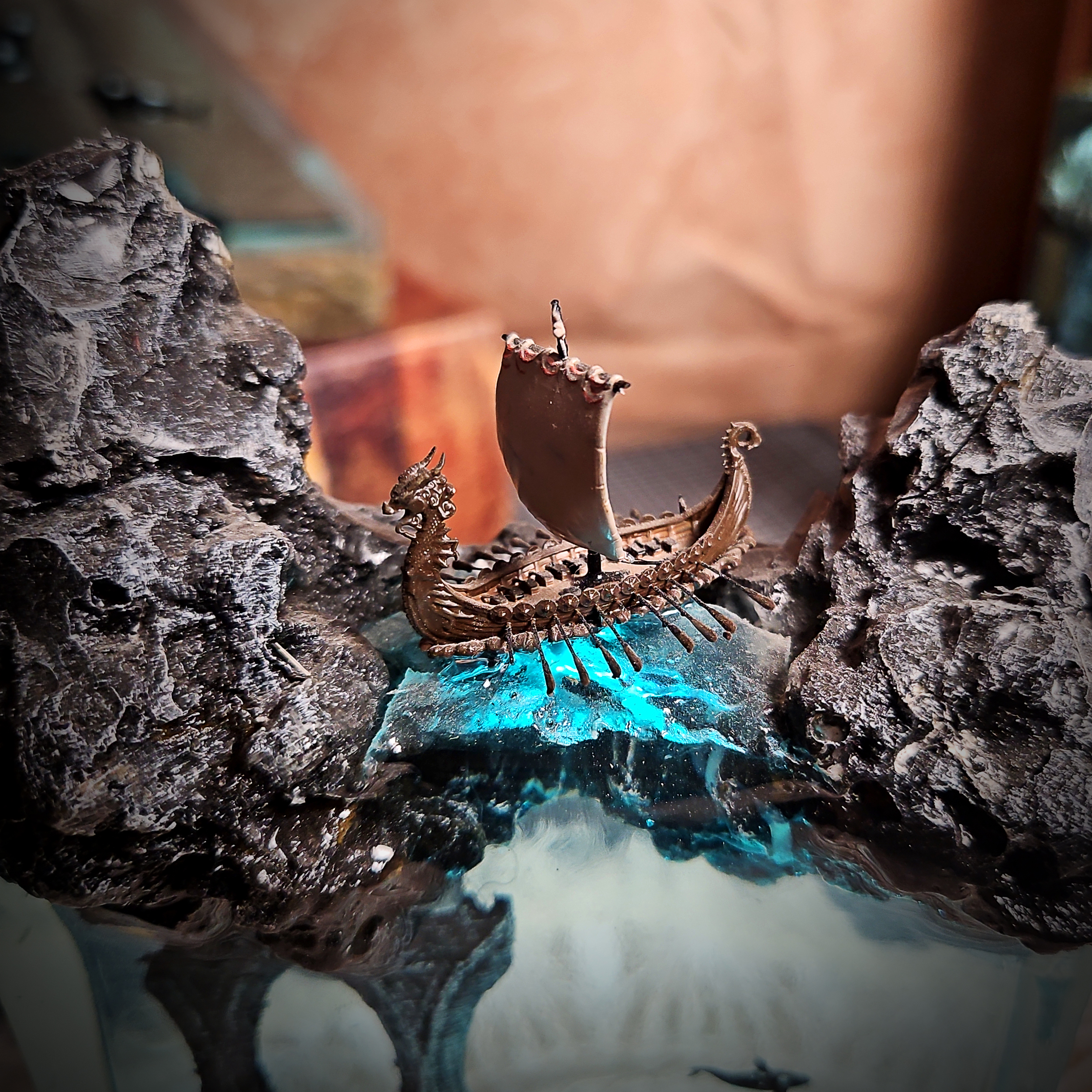 This unique resin lamp transports you to a Viking voyage across turbulent seas. Featuring a wooden longship battling the waves, this detailed scene is rich with motion, history, and adventure β a striking piece for history lovers and fantasy fans.