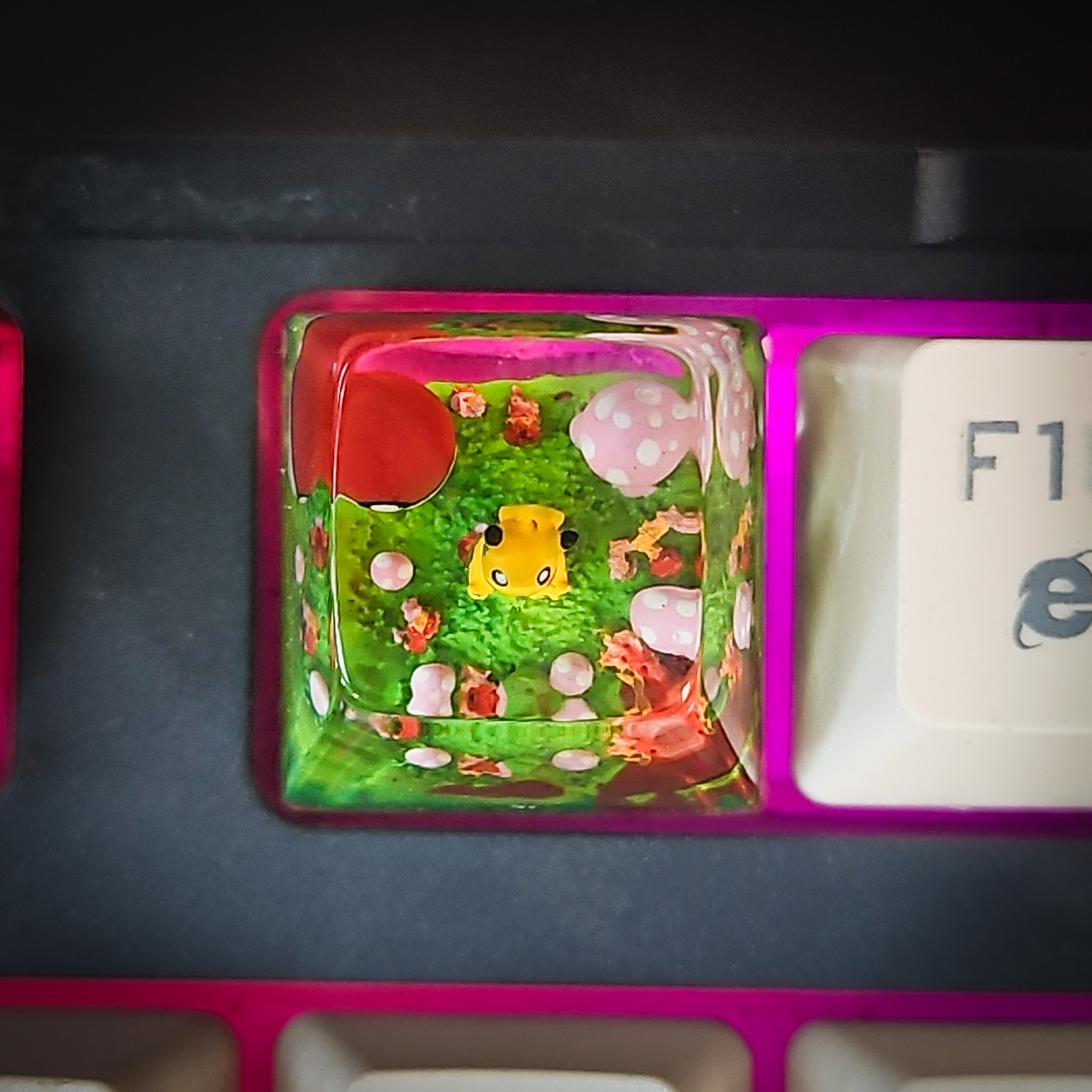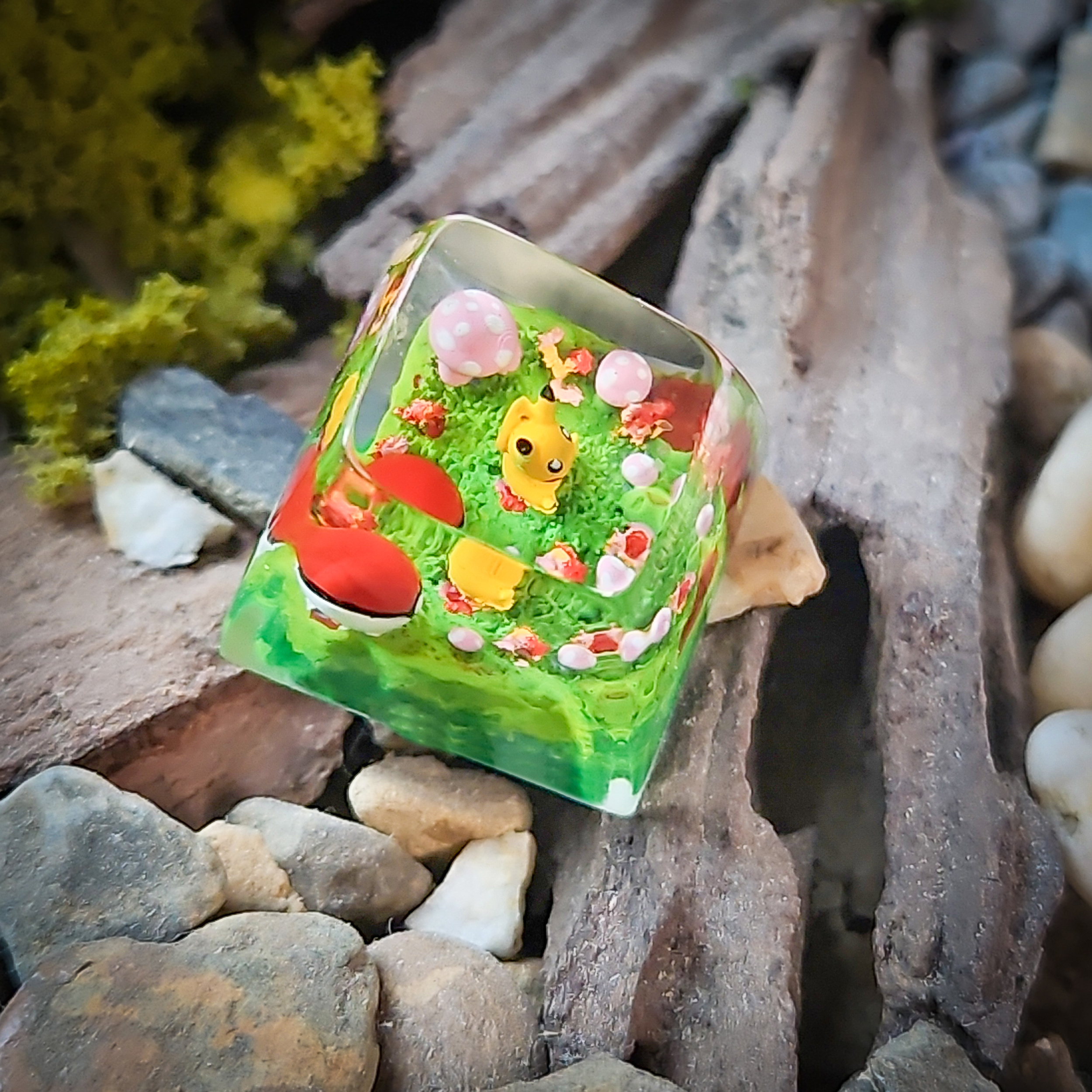 Enhance your keyboard with this handcrafted 1u resin keycap featuring Cubone, the iconic Ground-type Pokémon known for its distinctive skull helmet. Carefully designed to fit most MX-style mechanical switches, this artisan keycap combines durability with unique artistic detail.