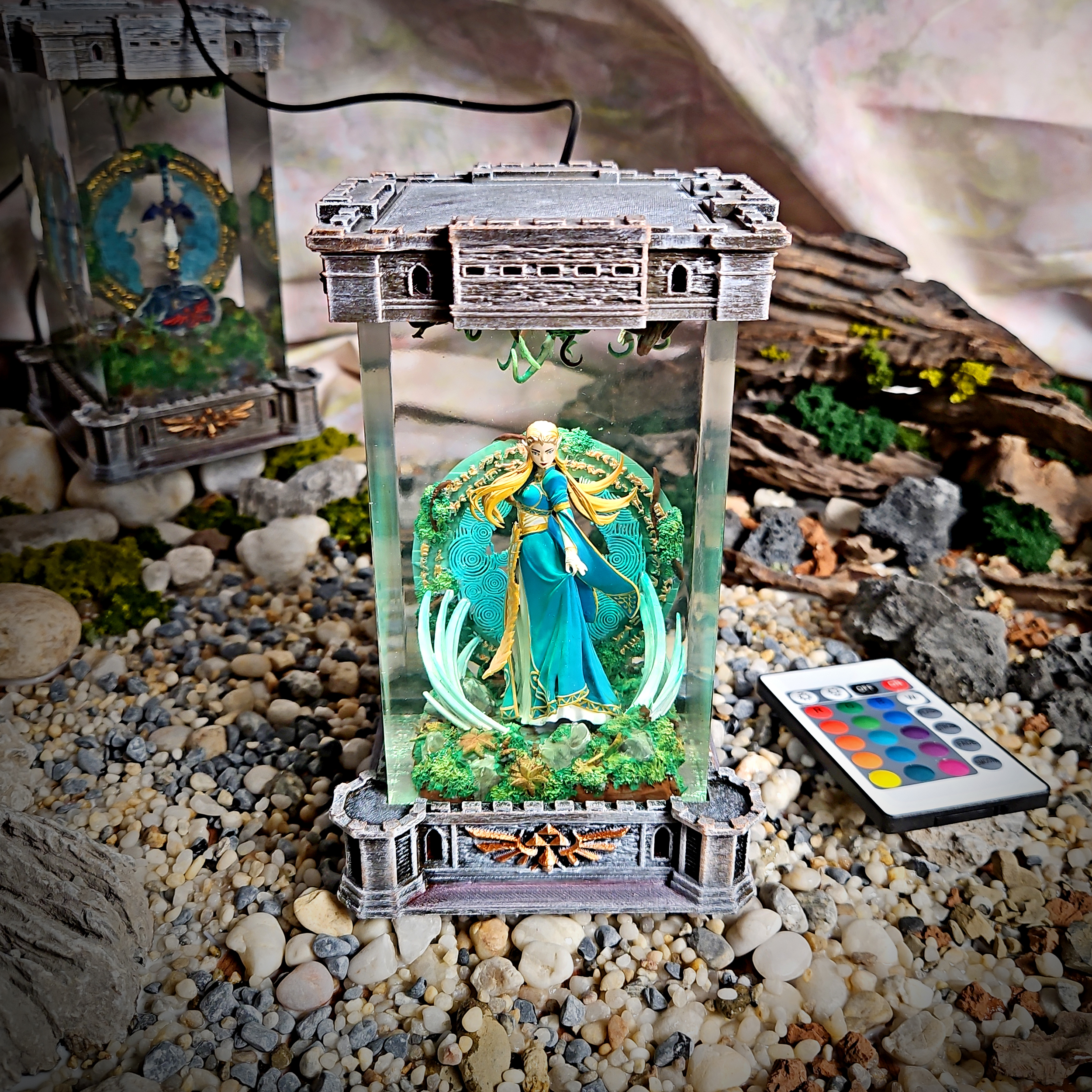 The Princess Zelda Resin Lamp showcases the royal guardian of Hyrule, poised with elegance and wisdom. A soft glow surrounds her in this sculpted piece, celebrating the strength and grace of one of gaming’s most iconic princesses.
