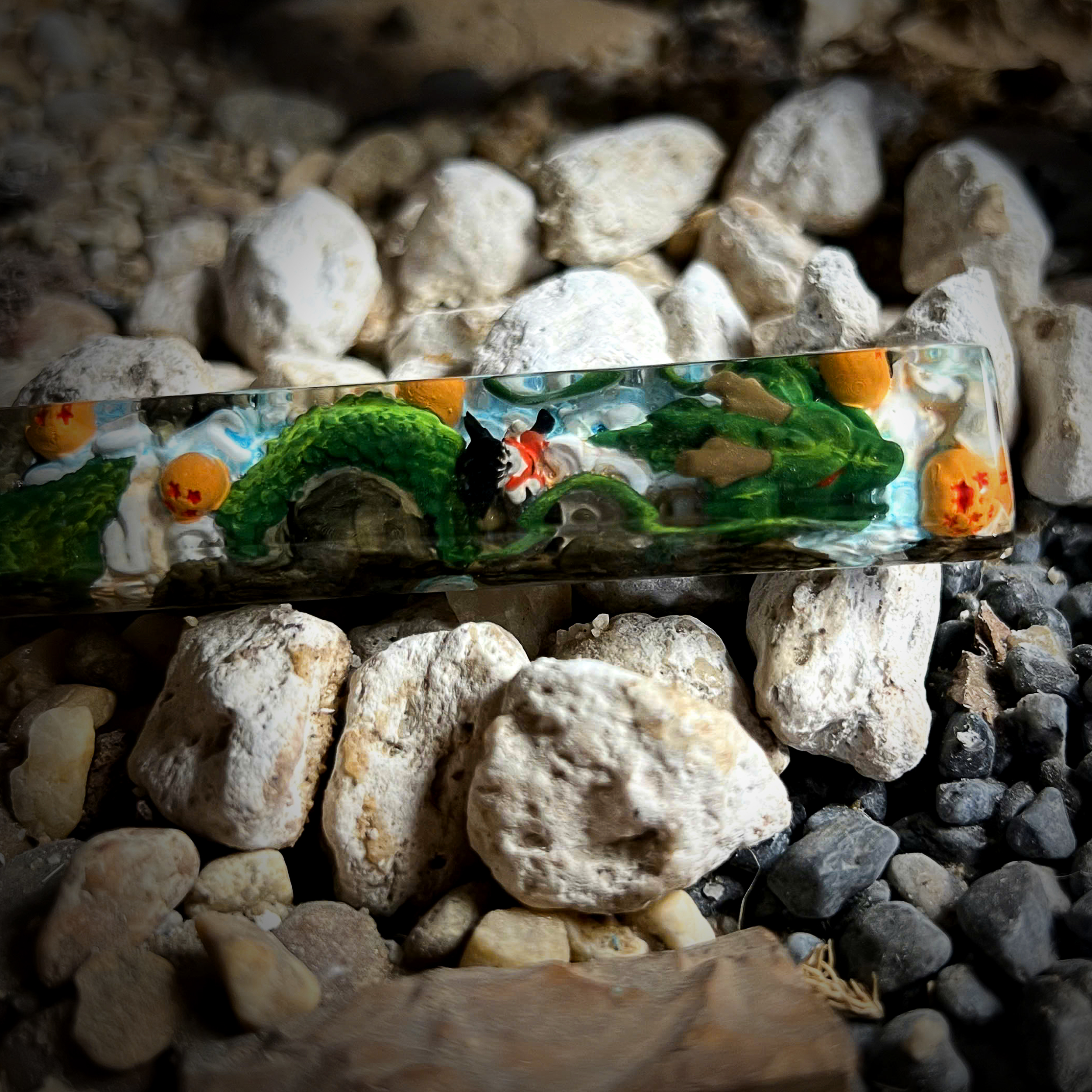 Summon the legendary power of the Dragon Balls to your keyboard with our Handmade Resin Spacebar – Shenlong & Dragon Balls. This stunning artisan piece features a meticulously crafted depiction of Shenlong, the mythical dragon, coiled majestically around the seven glowing Dragon Balls. It’s a breathtaking tribute to the iconic moments from Dragon Ball, blending fantasy and nostalgia into a single keyboard masterpiece.
