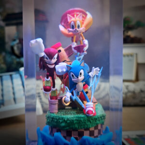 • 3D Design & Print: Designed to reflect Sonic’s iconic form—spikes, shoes, and attitude.