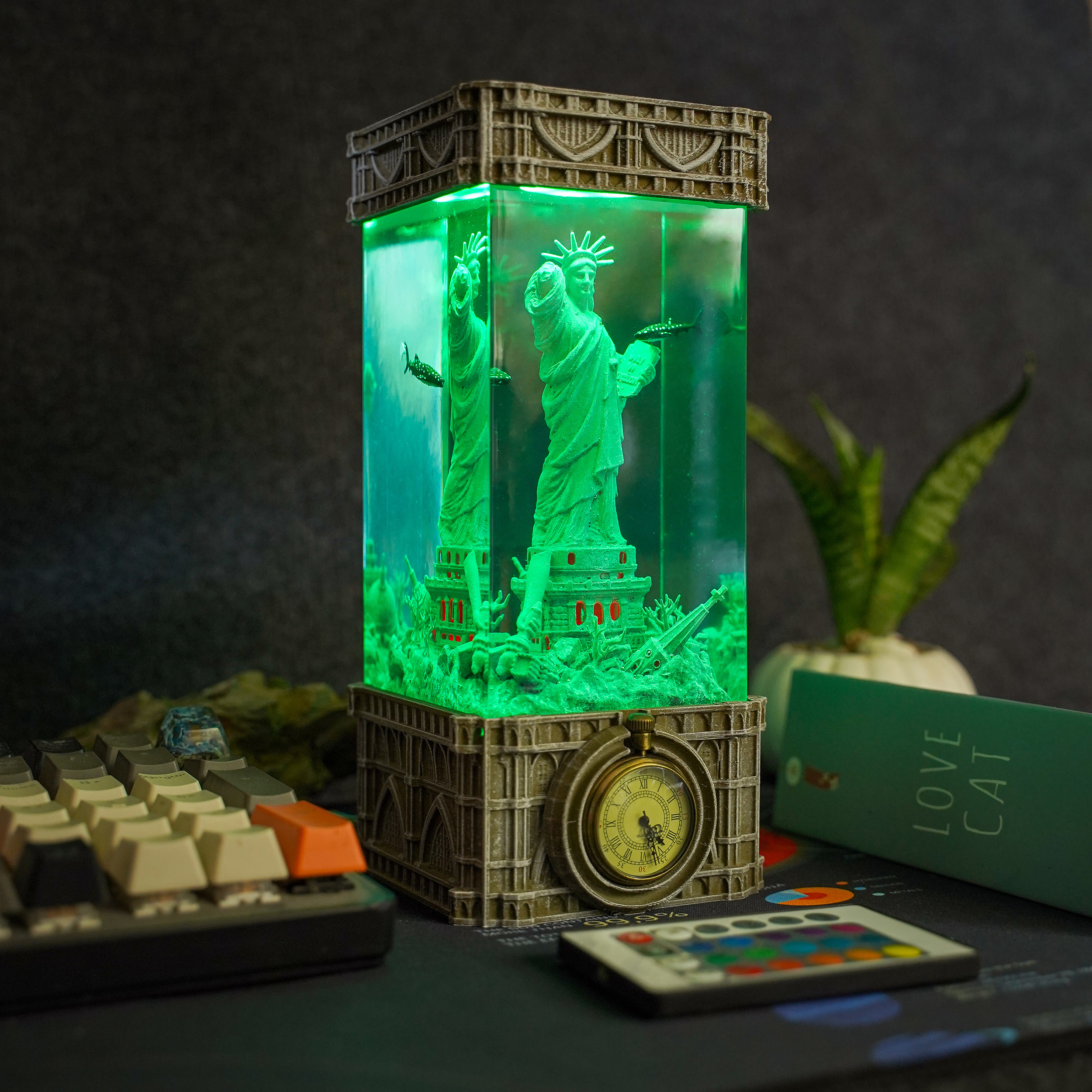 A dark and artistic reinterpretation of a global icon, the Gothic Statue of Liberty Resin Lamp infuses a moody, dramatic ambiance into the famous monument. The torch-bearing figure, cast in resin and surrounded by shadowy textures, radiates a mystical glow that evokes both reverence and mystery.