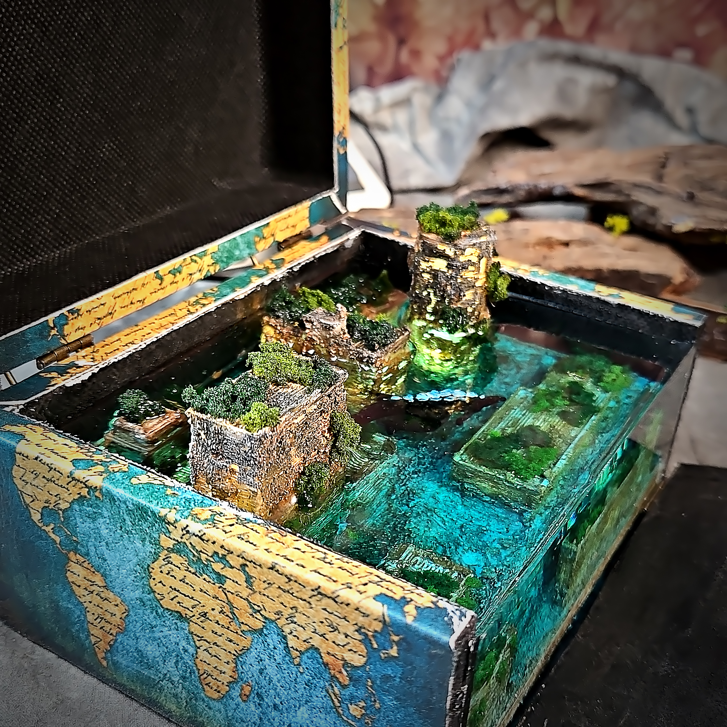 “The Lost City” offers a unique blend of artistic expression and thoughtful contemplation. It’s a conversation starter, a focal point, and a reminder that even in abandonment, there is beauty to be found. This handcrafted light box is sure to appeal to those who appreciate the evocative power of art and the timeless appeal of forgotten places. It’s a testament to the skill of the artisan and a poignant reminder of the stories hidden within the ruins of the past.