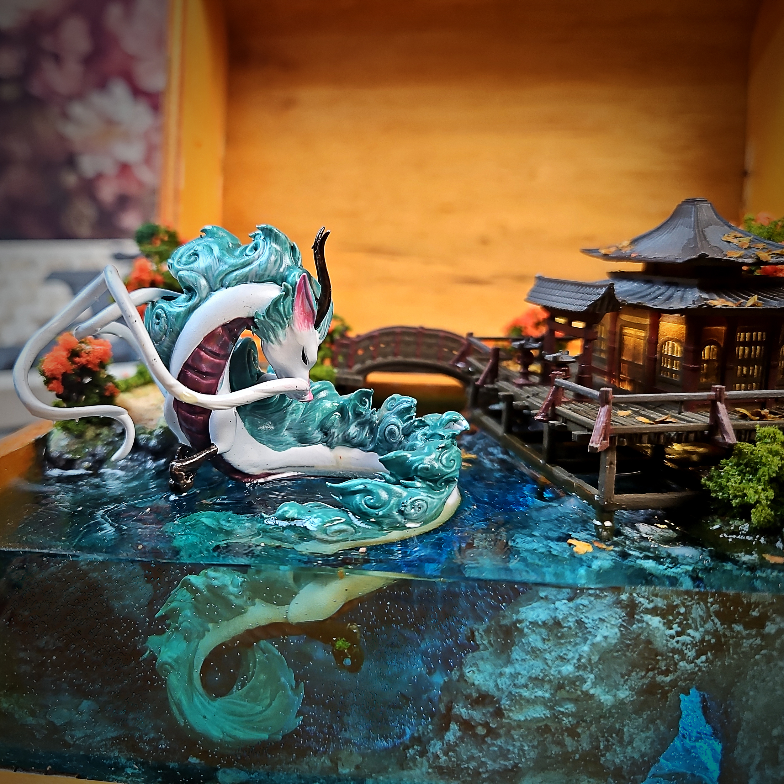 Each lamp box is meticulously crafted from high-quality resin, ensuring both durability and a stunning level of detail. The translucent resin allows the warm, inviting light to filter through, creating a mesmerizing ambiance that evokes the film’s captivating atmosphere. The dragon’s scales, the intricate details of the Torii gate, and the overall composition are all carefully sculpted and painted to capture the essence of “Spirited Away.”