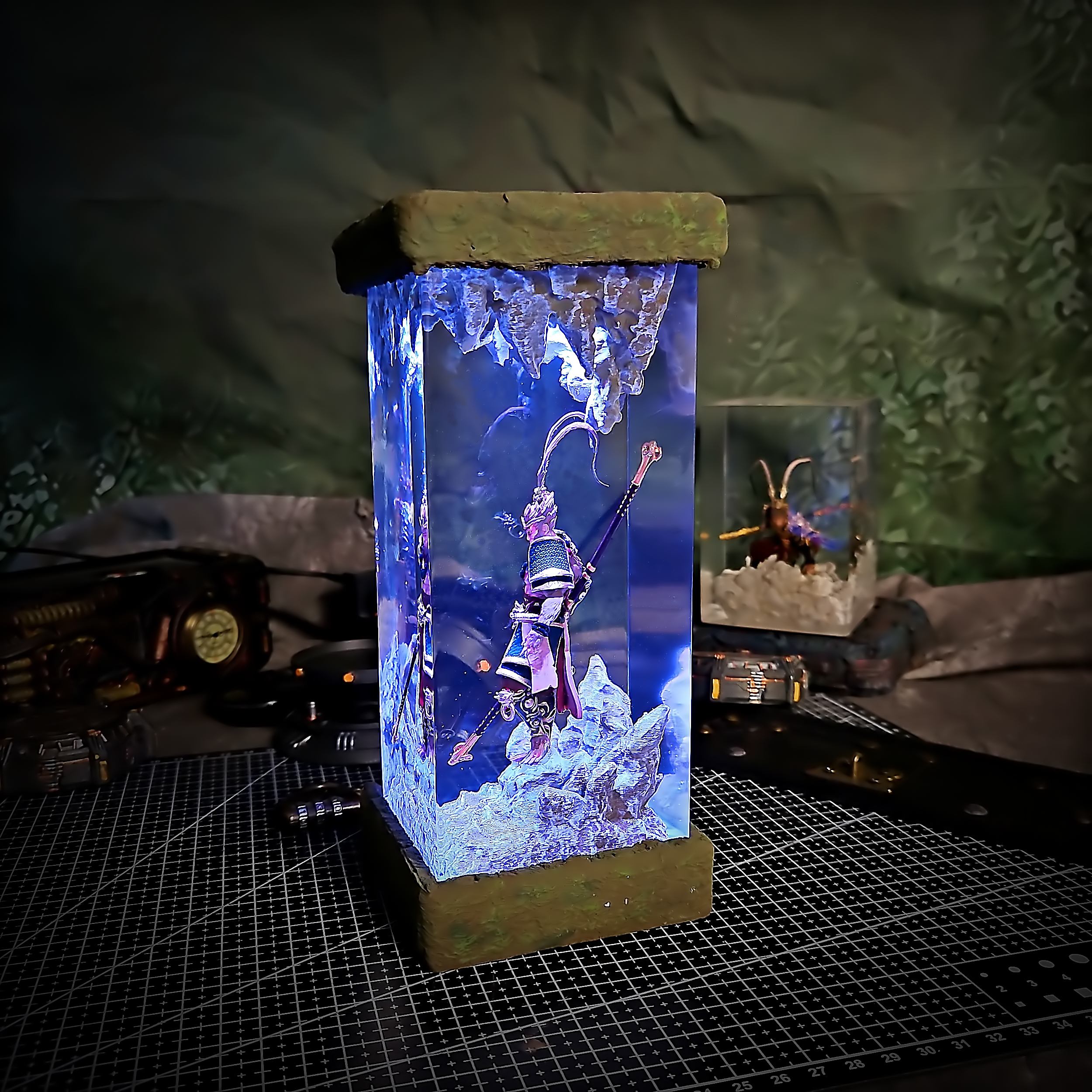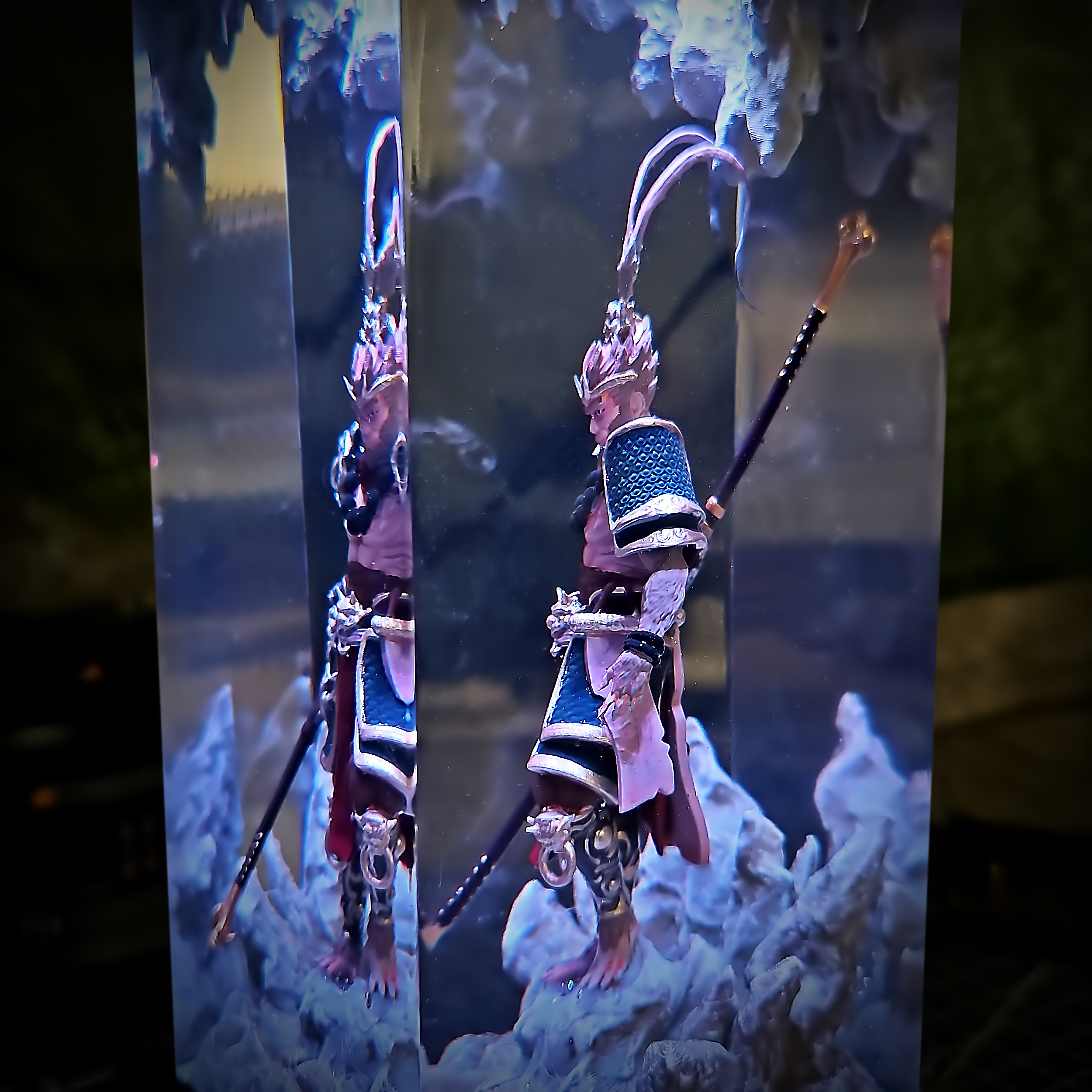 - Resin Casting: Durable clear resin is used to encase the figure, enhancing depth and light diffusion.